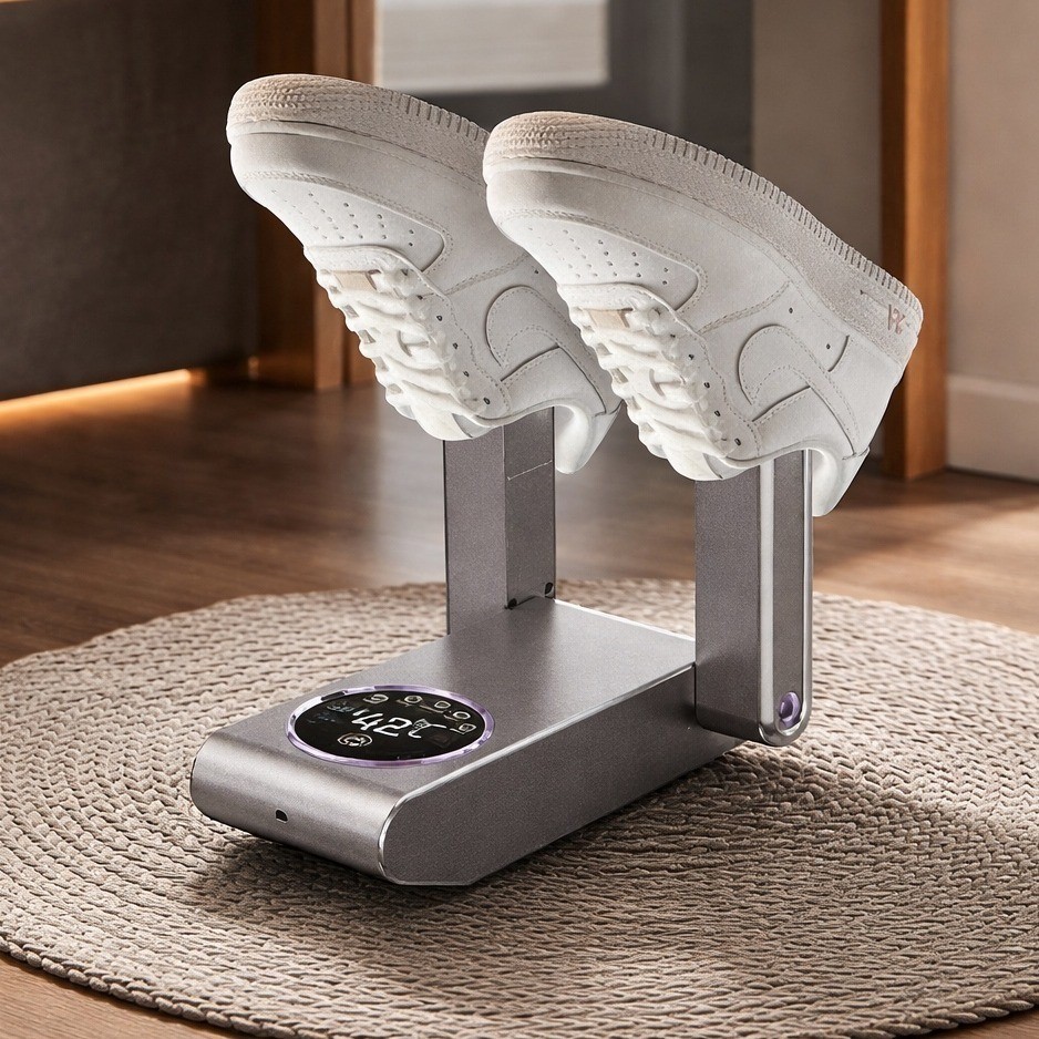 как выглядит Woodcrest Maple Telescopic Portable Shoe Dryer Black 25W 110V Foldable Timer фото