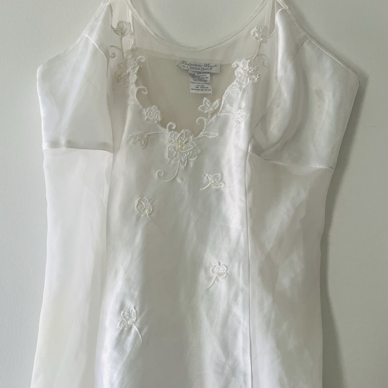 как выглядит Seductive Wear by Cinema Etoile Size Medium White Satin Beaded Lingerie Nightie фото
