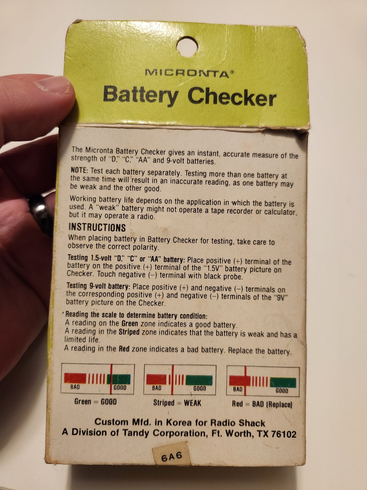 Vintage Radio Shack Micronta Battery Checker with Box Tester Works 22-098