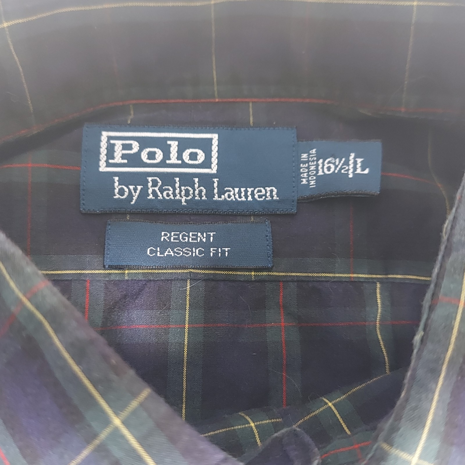 Polo Ralph Lauren Regent Classic Fit Windowpane Plaid Blue Button Up Large Shirt