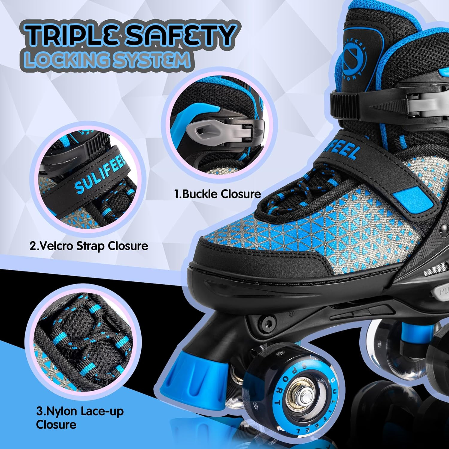 Roller Skates for Girls Boys Kids,4 Sizes Adjustable Quad Skates with Light u...