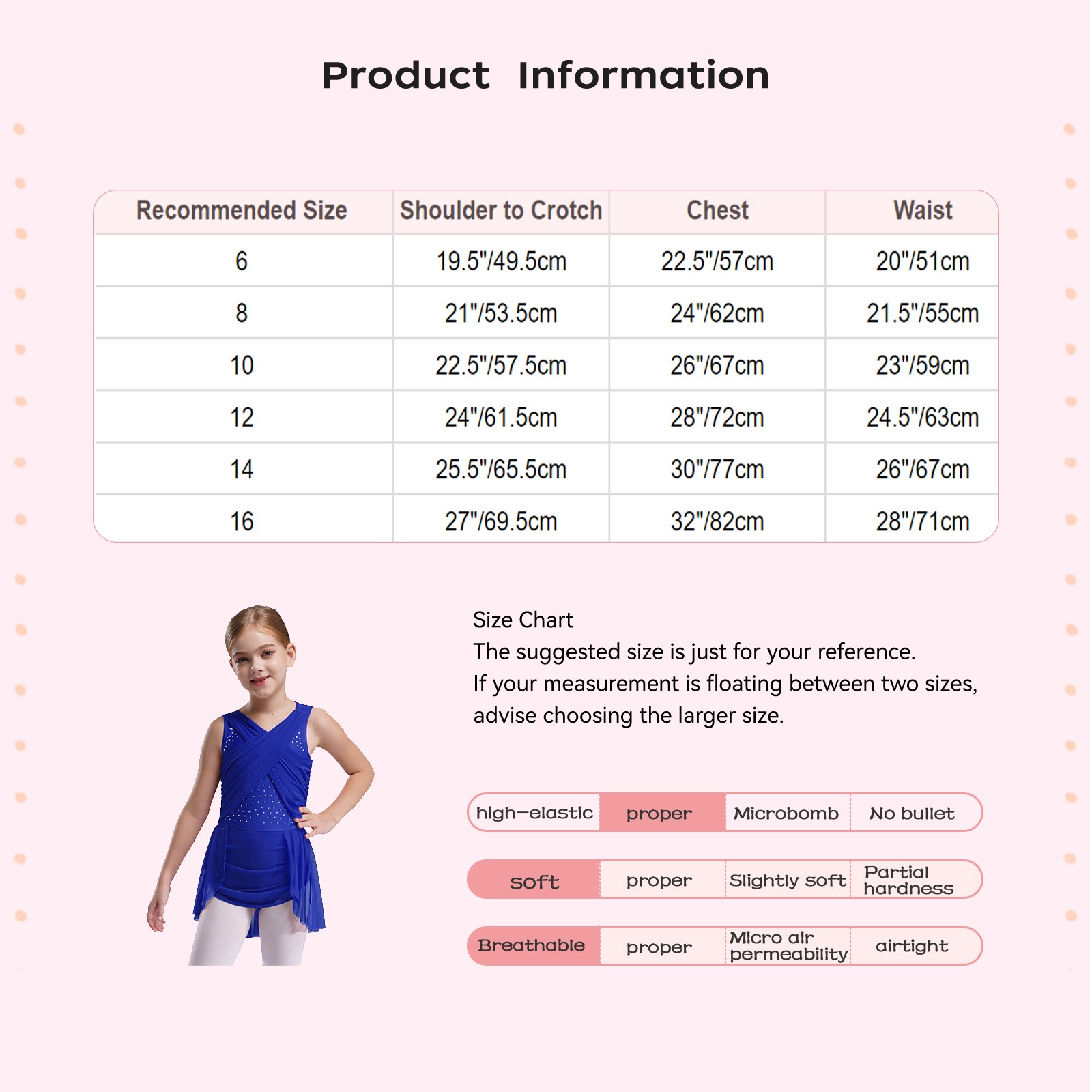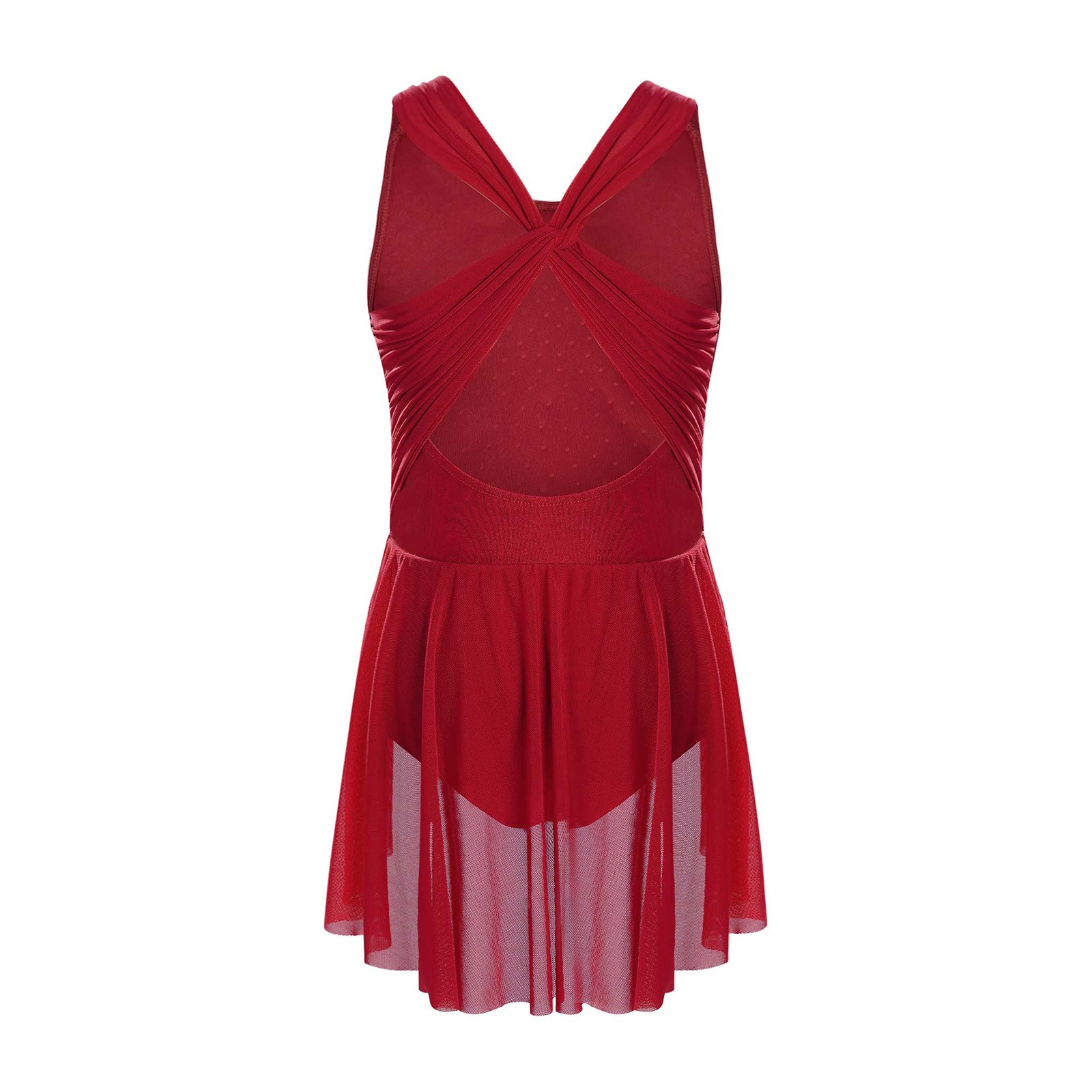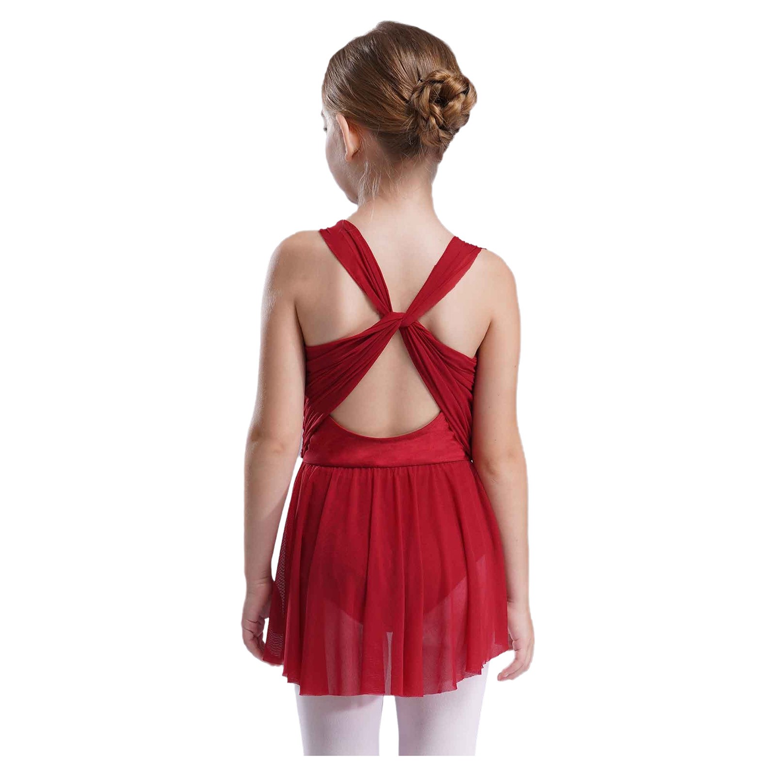 Girls Sparkly Lyrical Contemporary Dance Dress Shiny Ballet Leotard Mesh Skirt