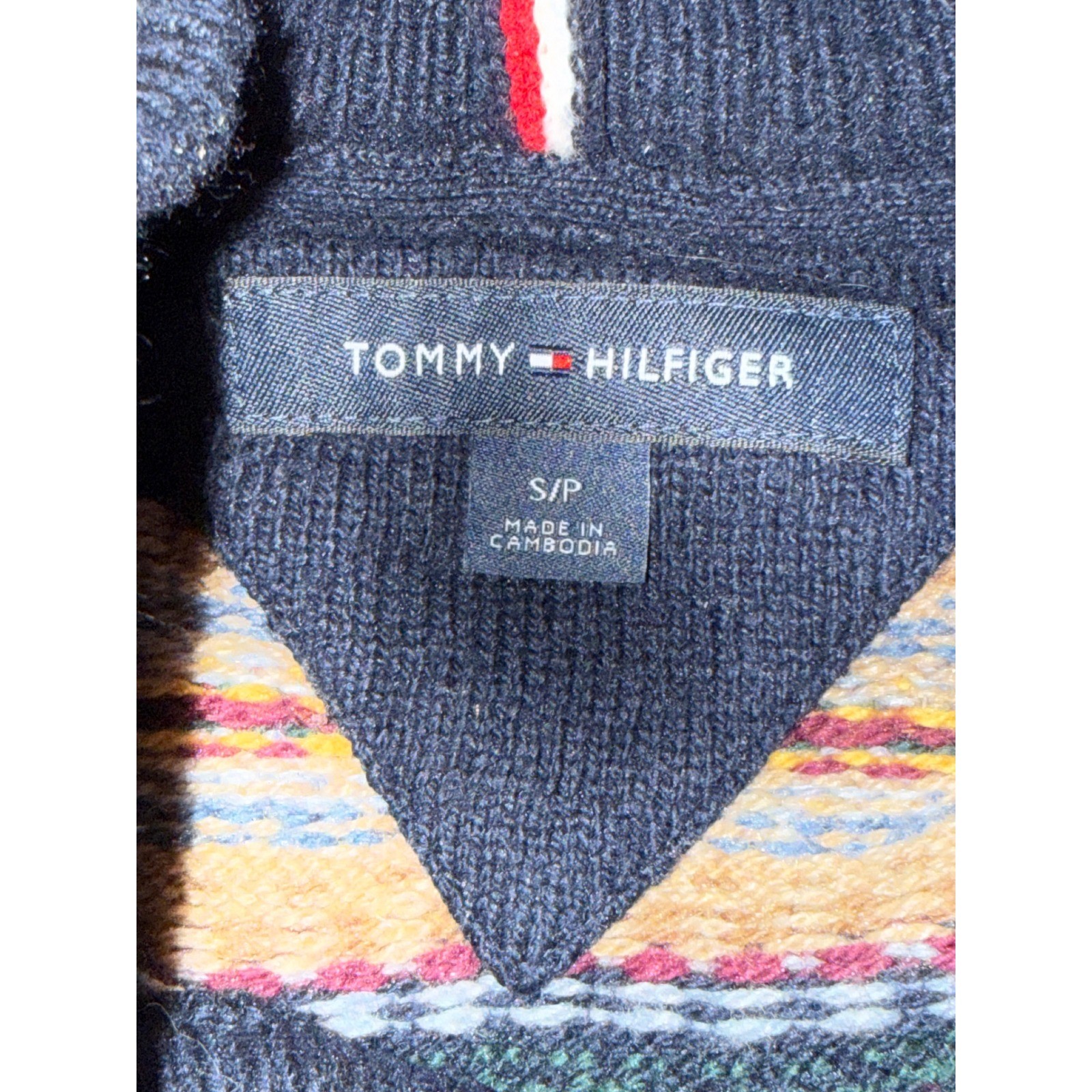 Tommy Hilfiger Mens Fair Isle Crewneck Sweater Navy Blue Cotton Wool Blend Small