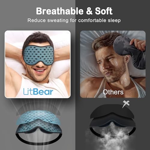 Breathable Sleep Mask, 3D Eye Mak Sleep for Side Sleepers Women Men, Ice Blue