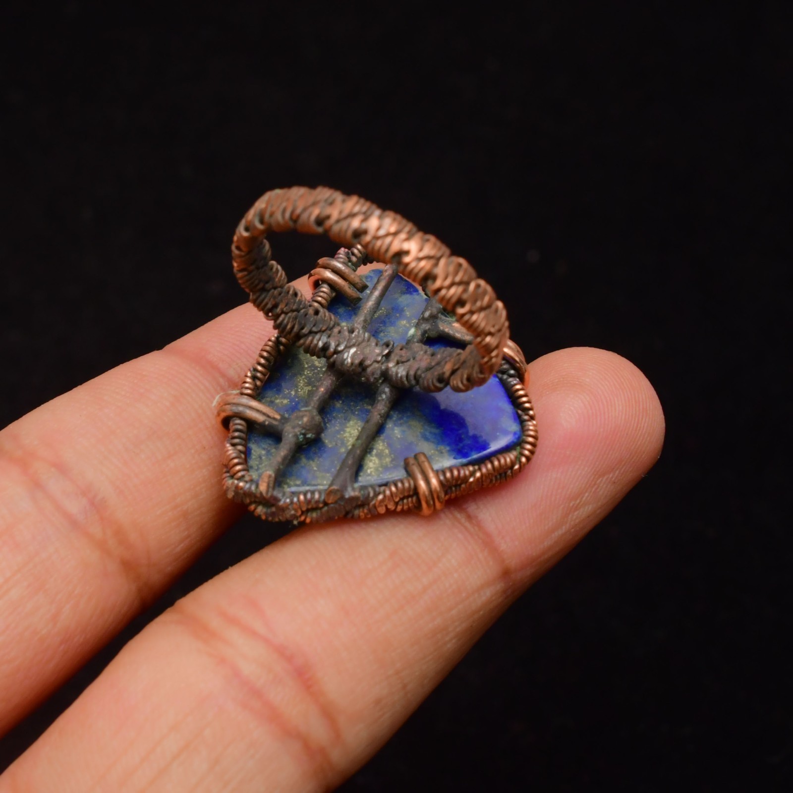 Lapis Lazuli Gemstone Copper Wire Wrapped Handmade Jewelry Ring Size 10