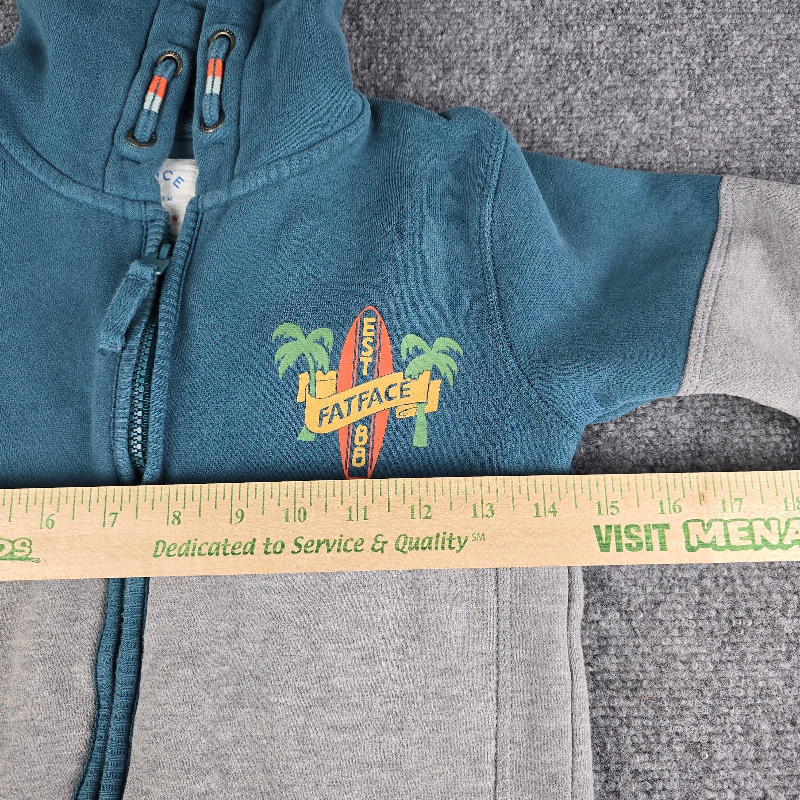 как выглядит Fat Face Boys 8-9 Hoodie Zip Jacket Teal Blue Gray Surfer Style Faded Wash фото