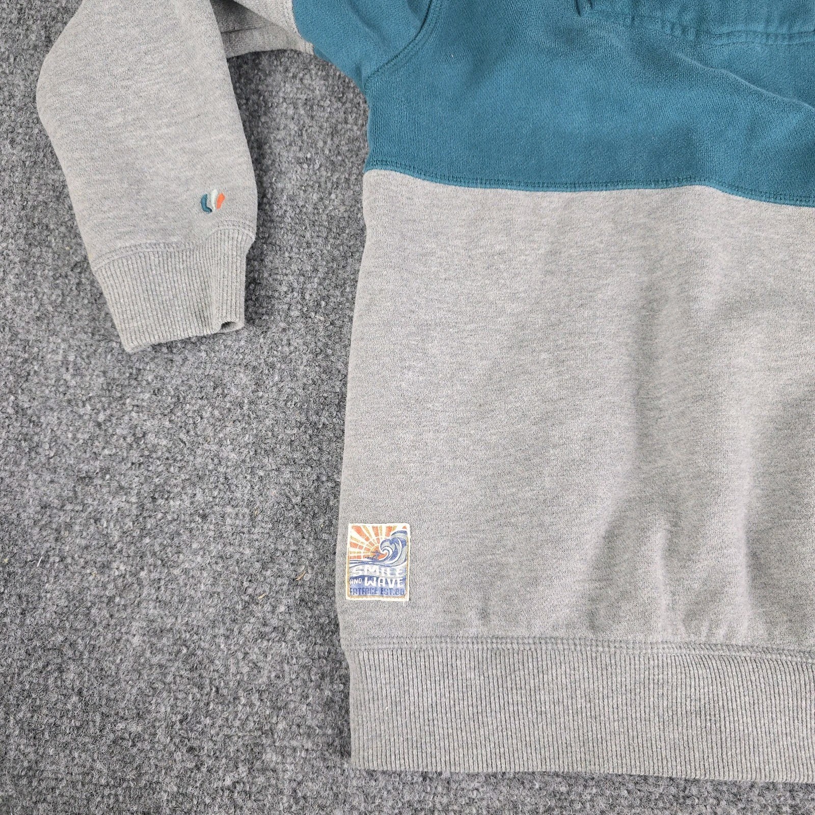 Fat Face Boys 8-9 Hoodie Zip Jacket Teal Blue Gray Surfer Style Faded Wash
