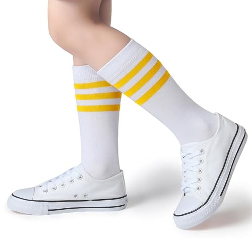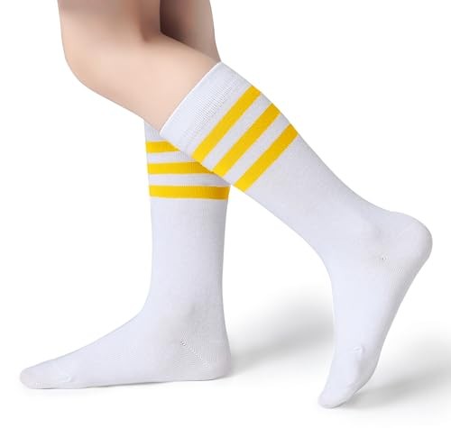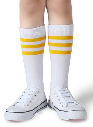 Boys Girls Over the Calf Striped Tube Socks Cotton 6-9 Years A08-yellow/White