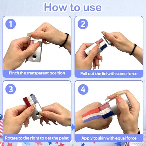 Red White Blue Stick Face Paint 2 PCs Patriotic America USA Face Body Paint