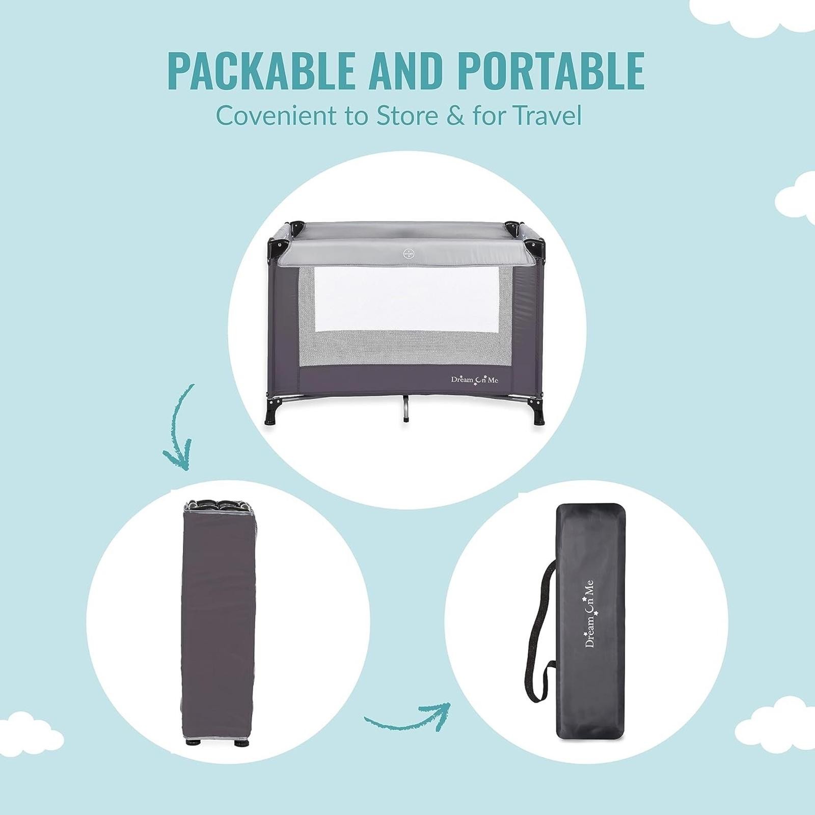 Dream On Me Nest Portable Play Yard With Carry Bag And Shoulder Strap, Grey