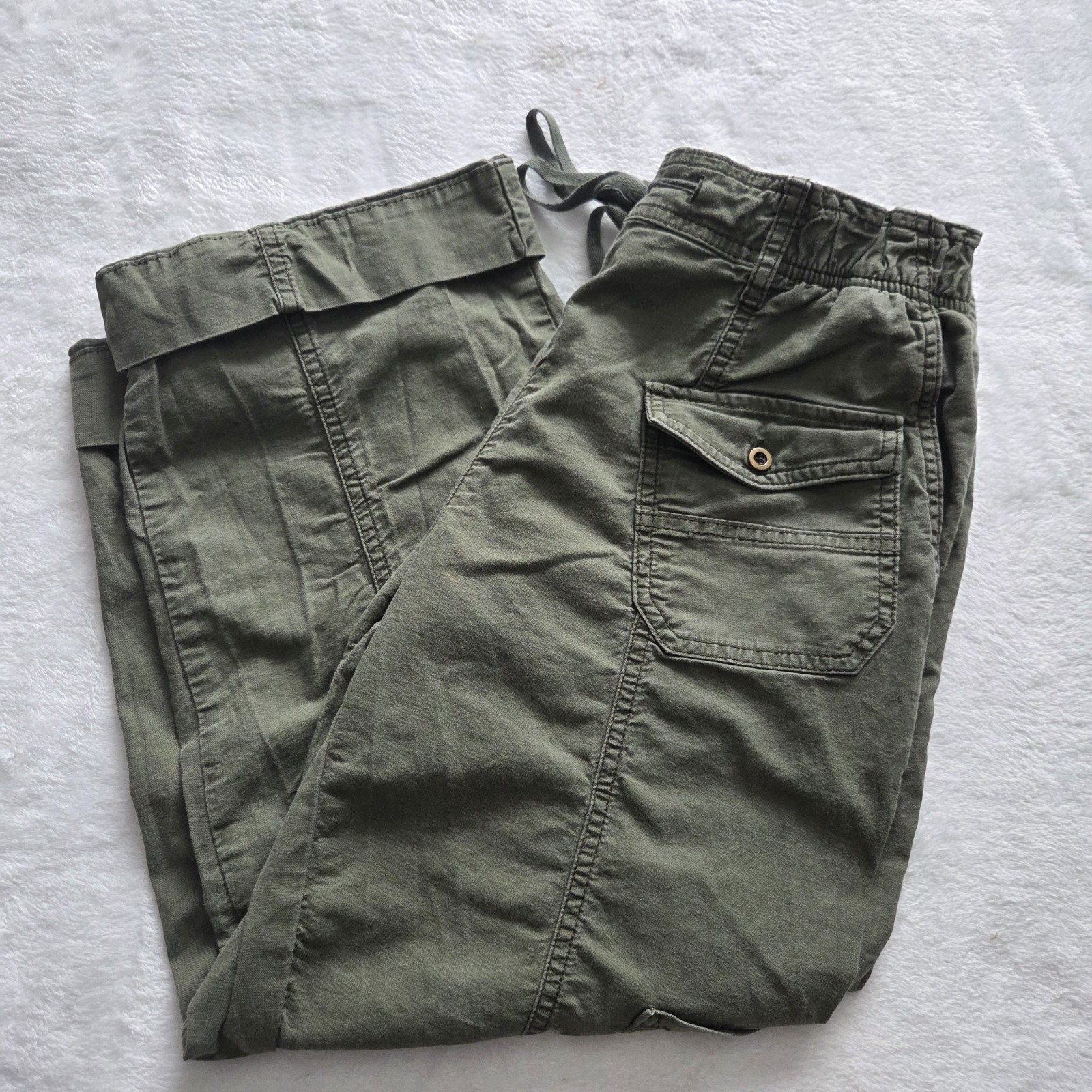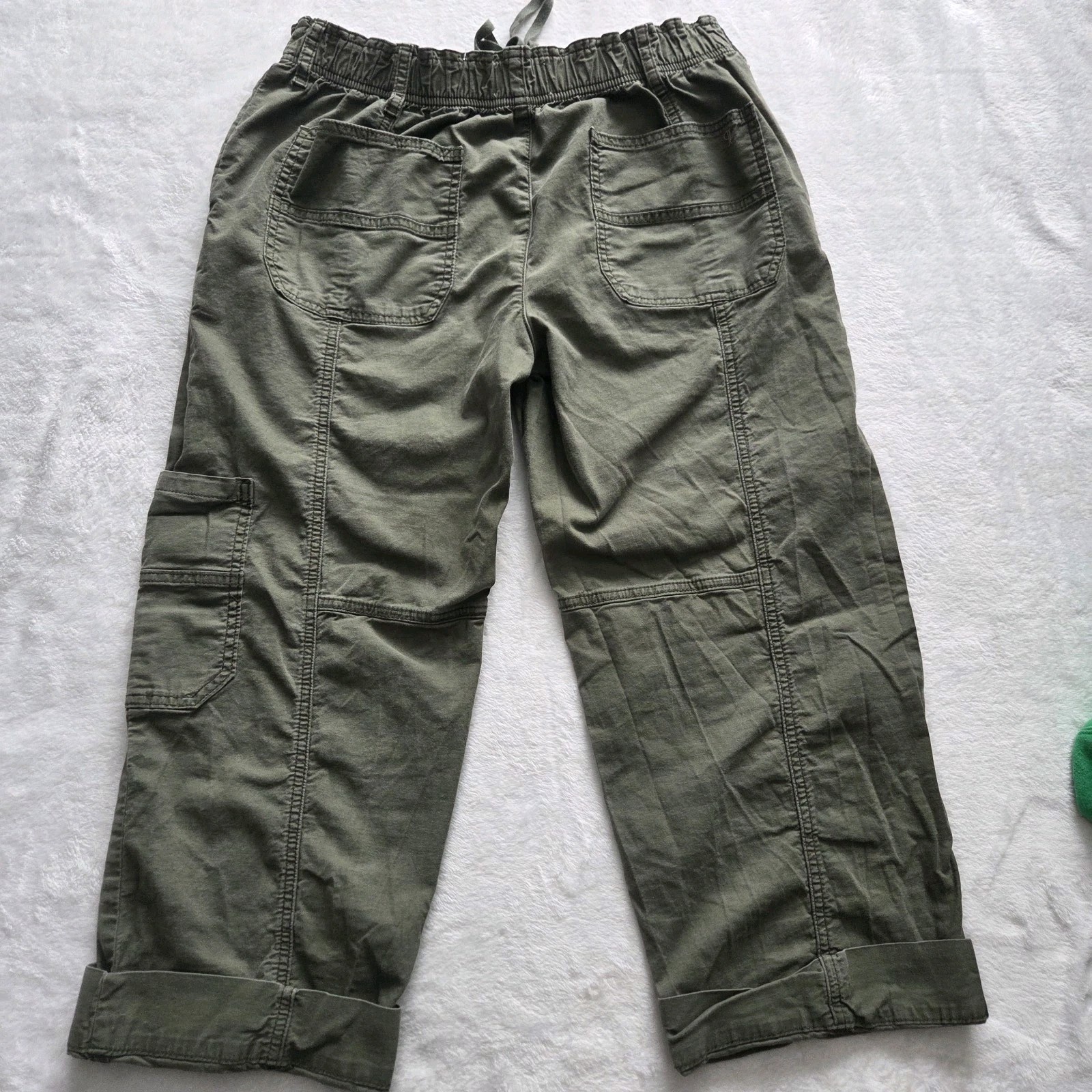как выглядит PILCRO Cropped Cargo Pants Size S Army Green Drawstring Waist Casual Relaxed фото