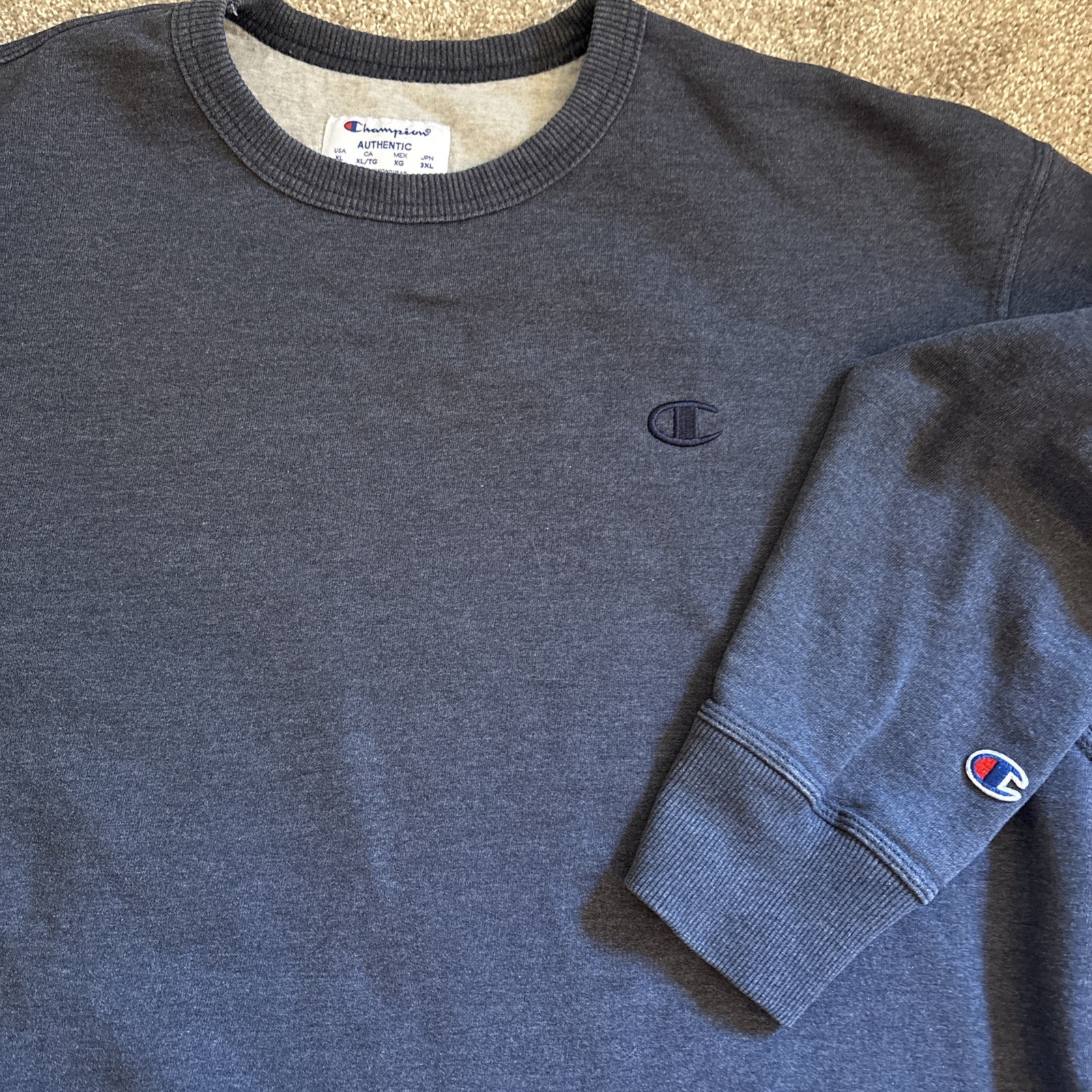 как выглядит Champion Mens XL Powerblend Fleece Pullover Crew Neck Blue Sweatshirt S0888 фото