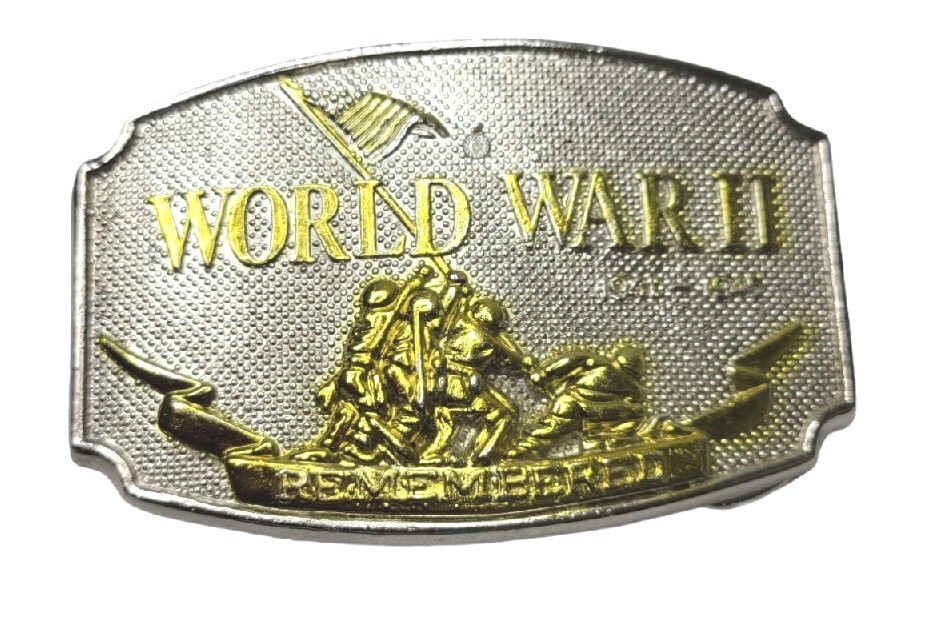 World War II Remembered Belt Buckle Silver Gold Tone 1992
