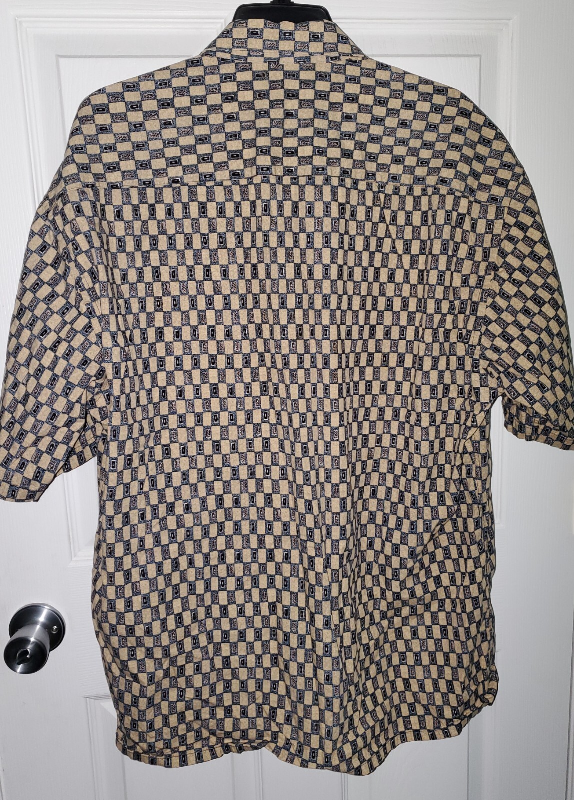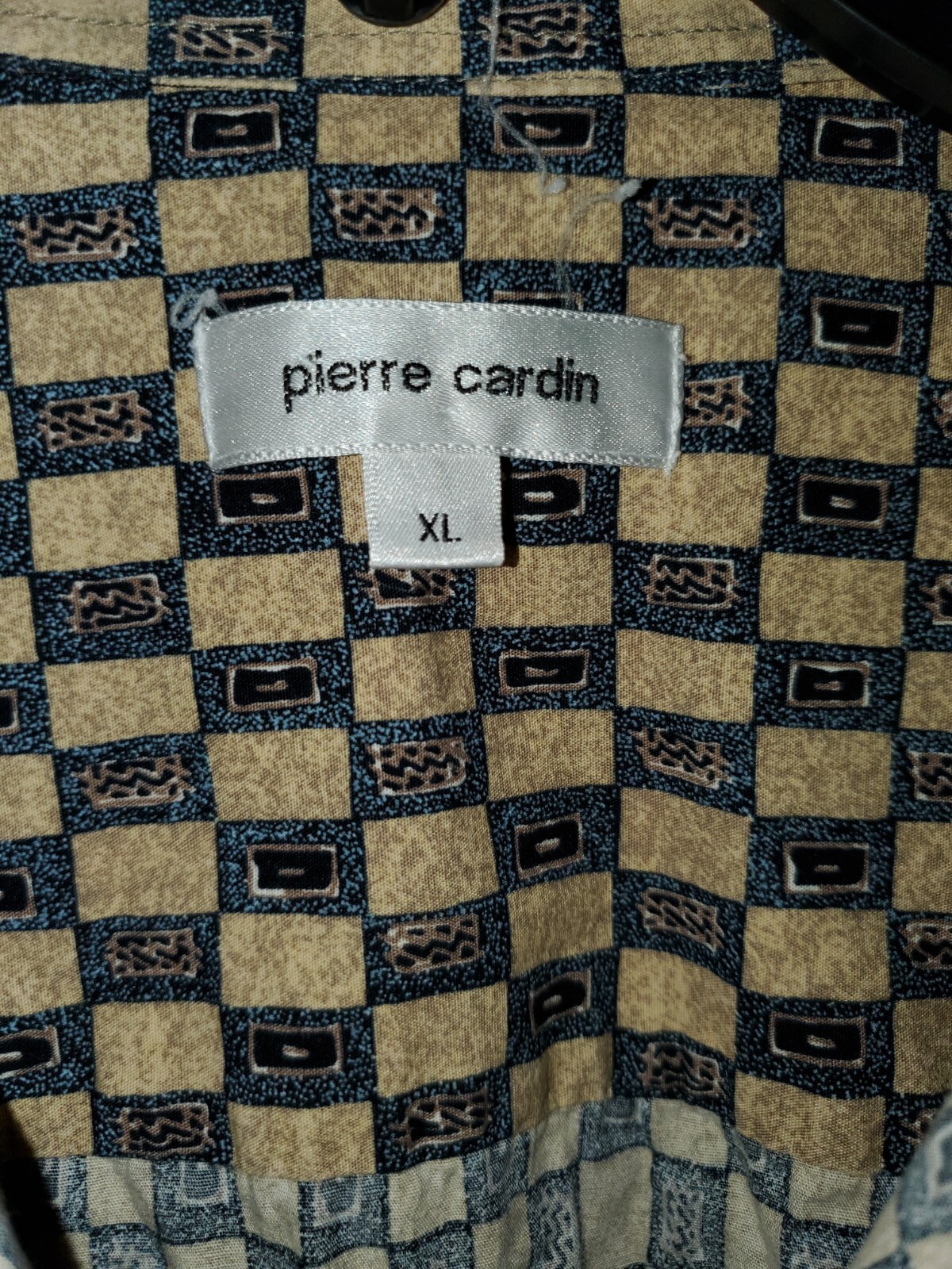 как выглядит PIERRE CARDIN Mens XL Beige Navy Print Short Sleeve Button Up Preppy Shirt фото