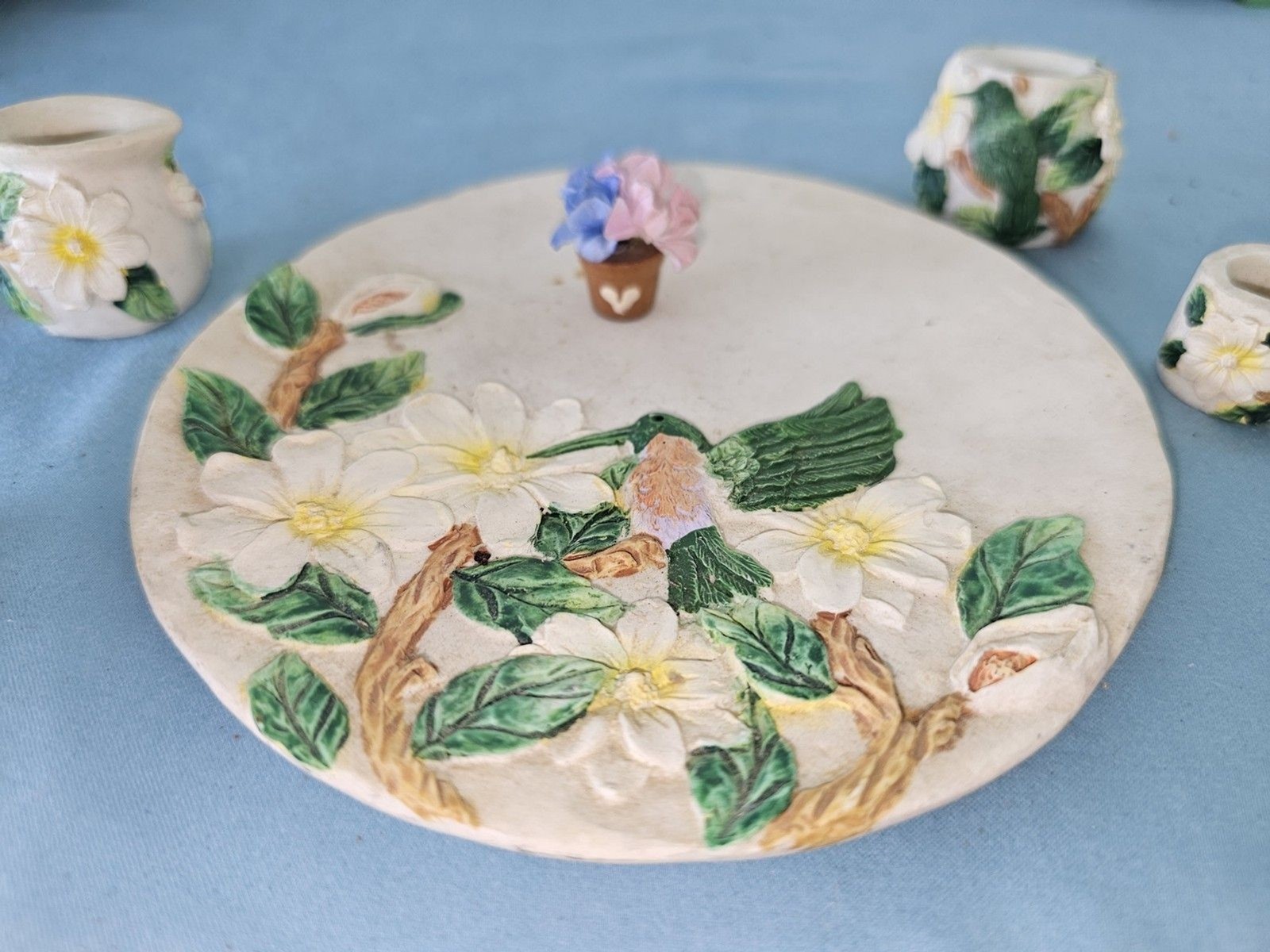 Vintage Hummingbird And Floral Tea Set 8 Piece