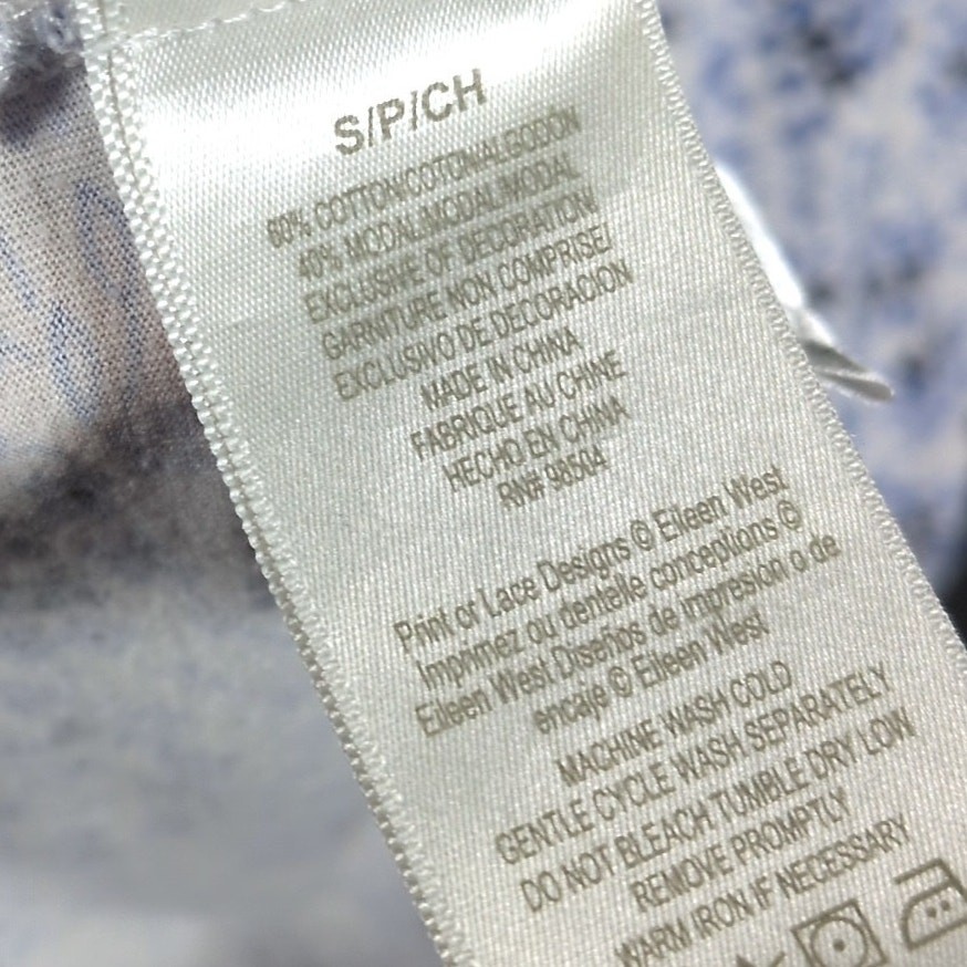 Eileen West Blue and White Cotton Modal Floral Lace Trim Nightgown