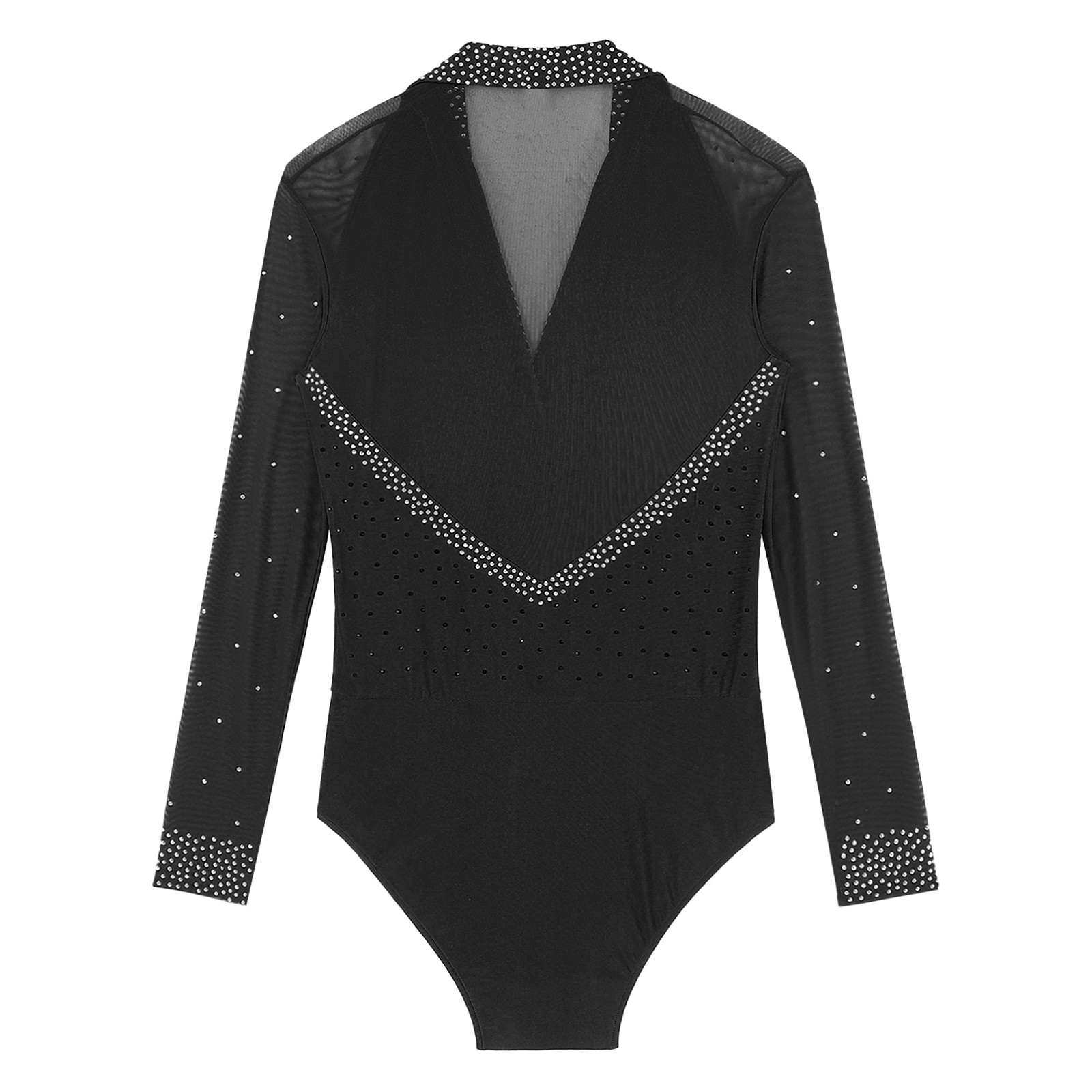 Men's Rhinestone Long Sleeve Latin Dance Leotard Tango Ballroom Mesh Bodysuit