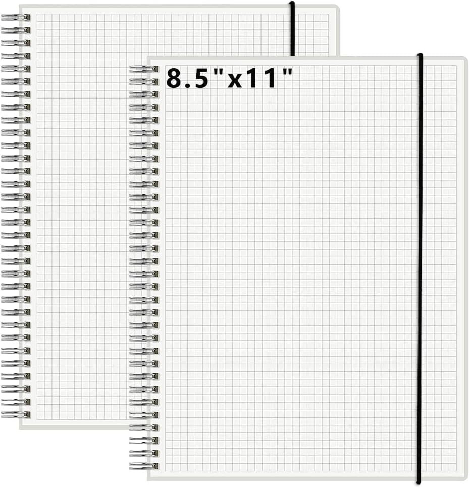 120 GSM Graph Spiral Notebooks, A4 Size, 2 Pack with Hard Cover and Band