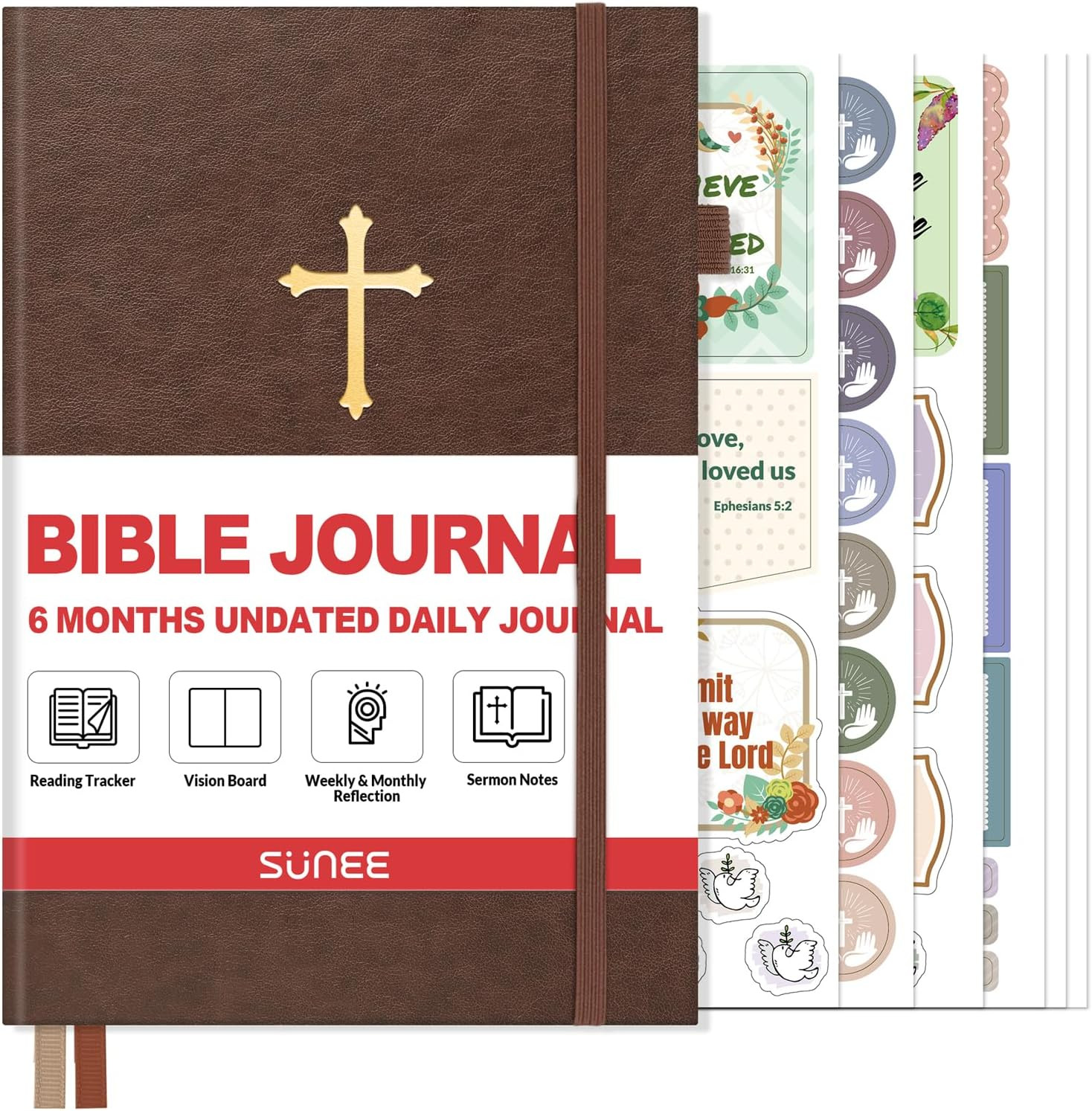 • Christian Bible Prayer Journal - Undated 6-Month Devotional Notebook Brown