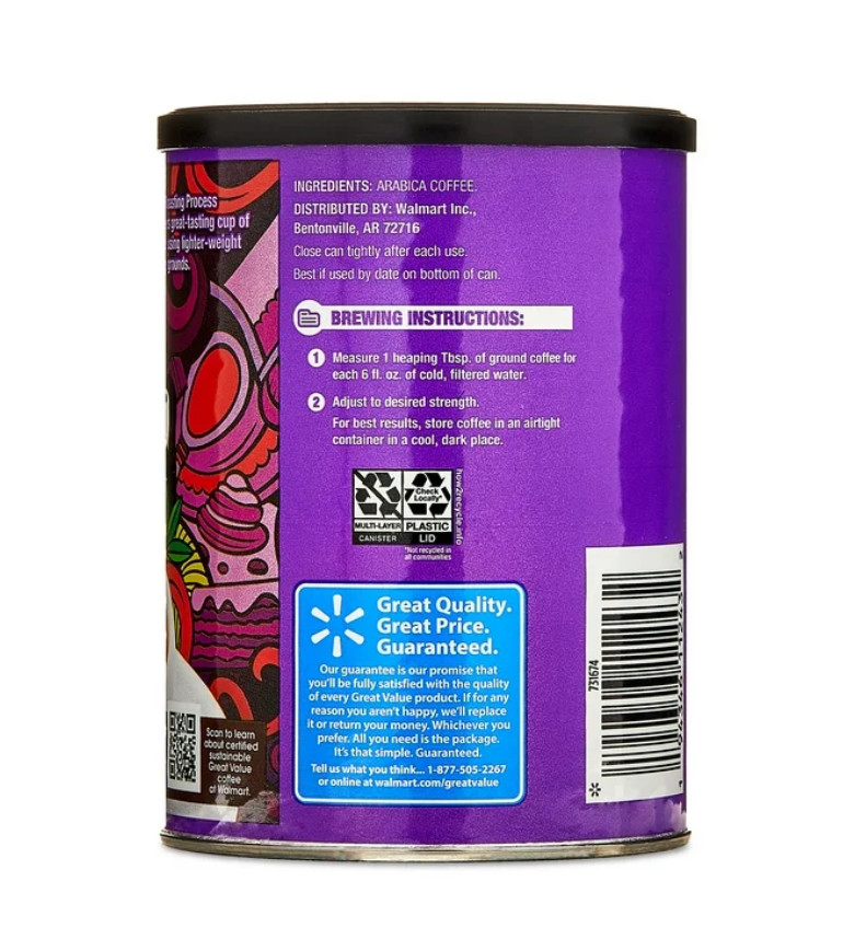 как выглядит Great Value Colombian Roast Ground Naturally Caffeinated Coffee, 9.6 oz Canister фото