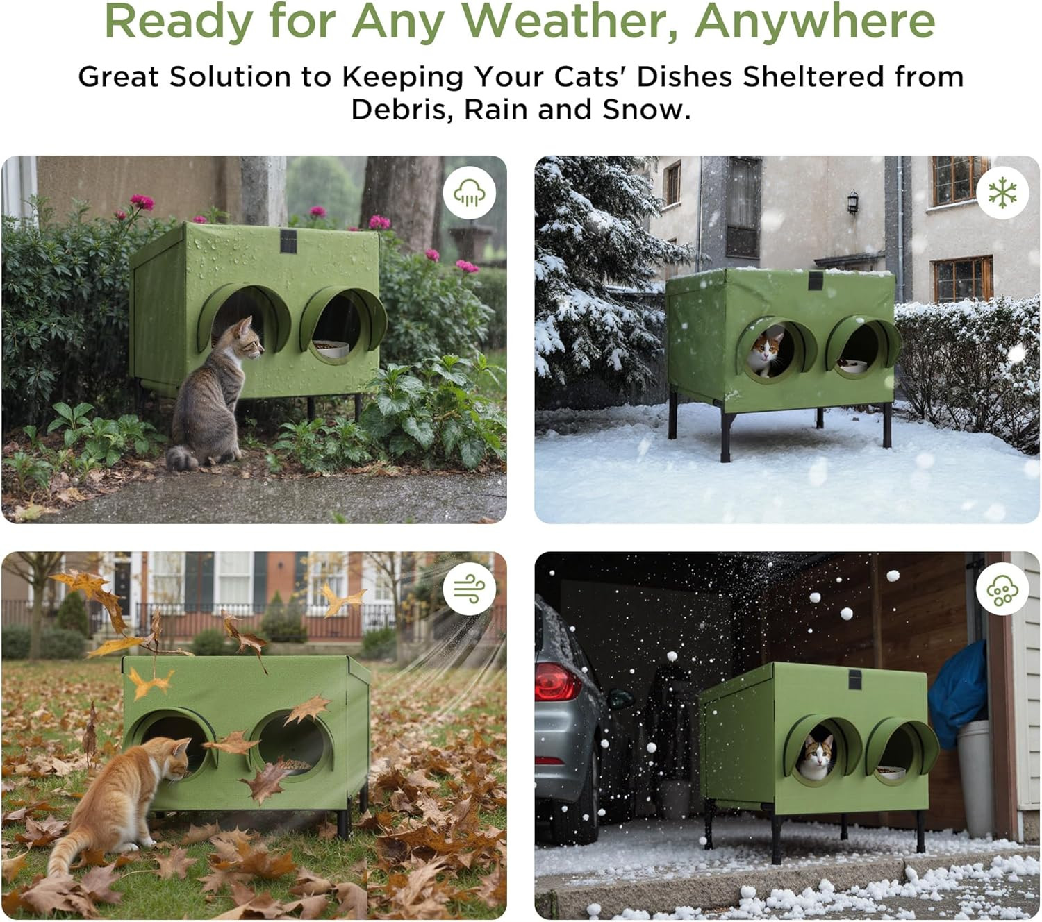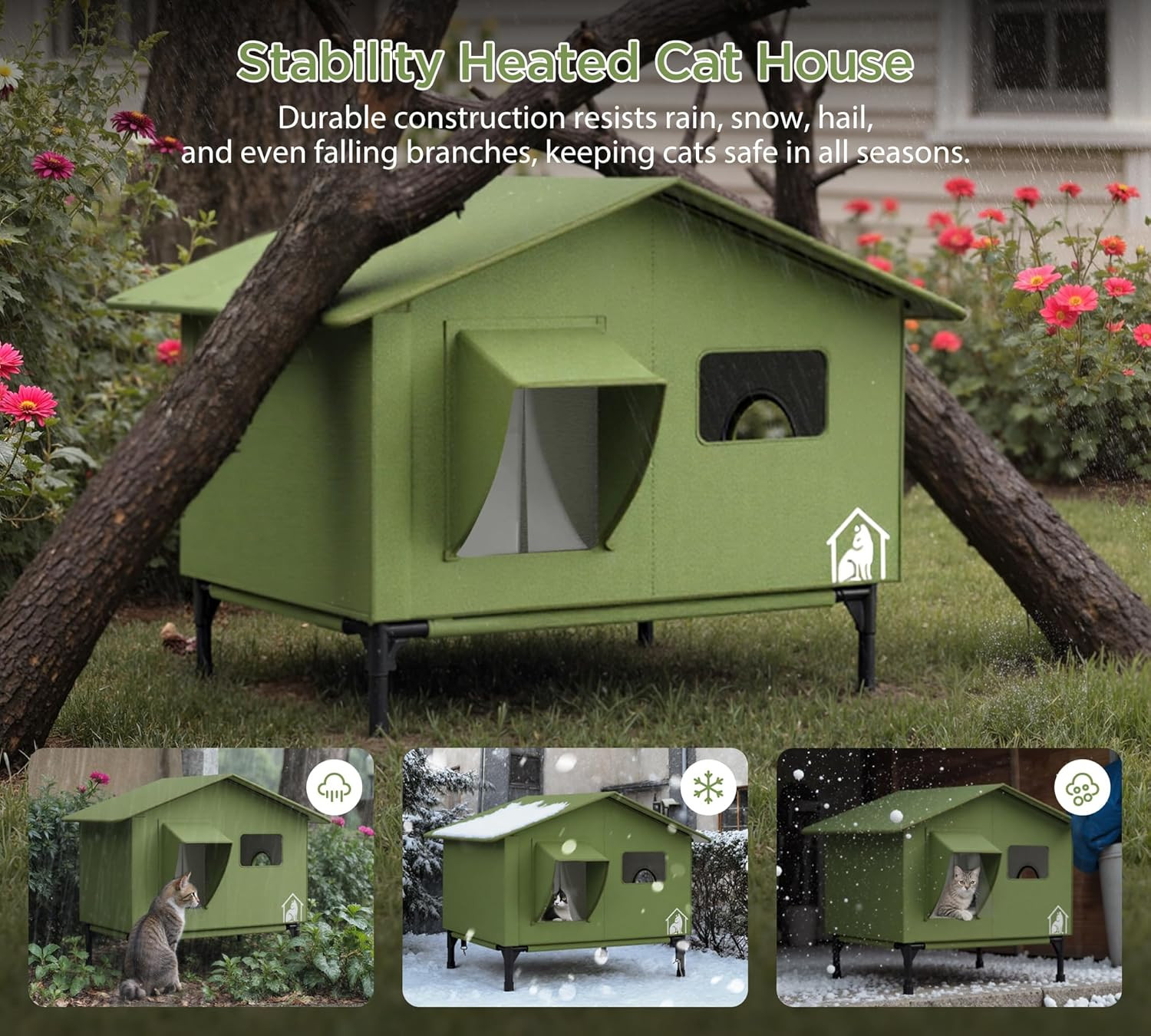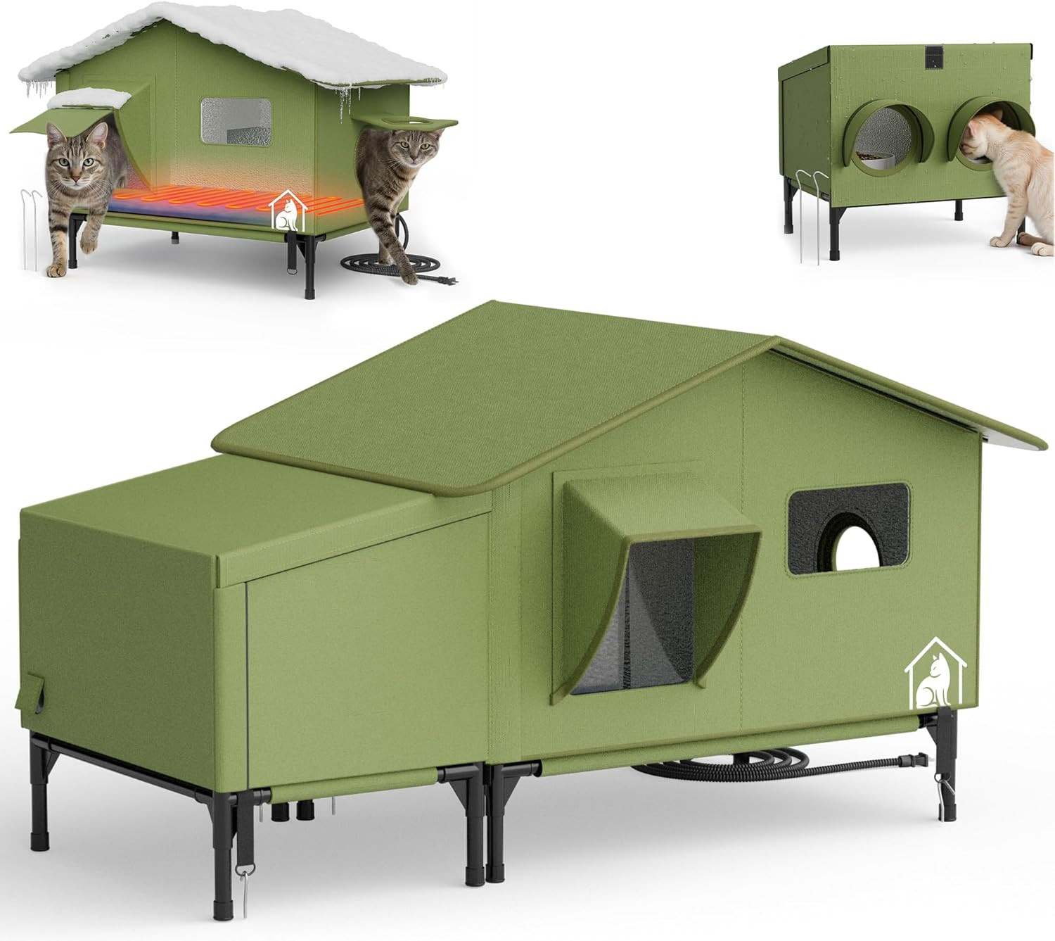 Outdoor Heated Cat House with Feeding Station Waterproof Insulated Shelter ...