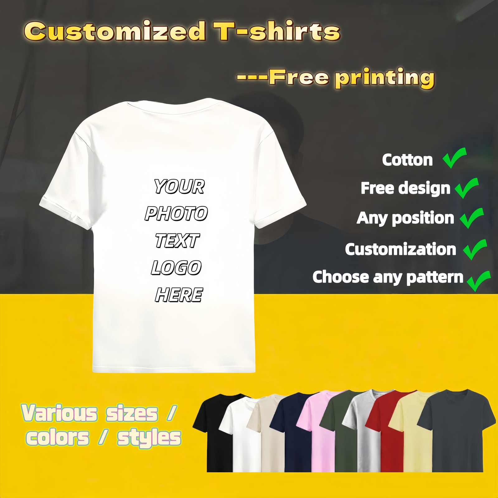 Personalized T-shirts, customizable with your text,photos or logo made of cotton