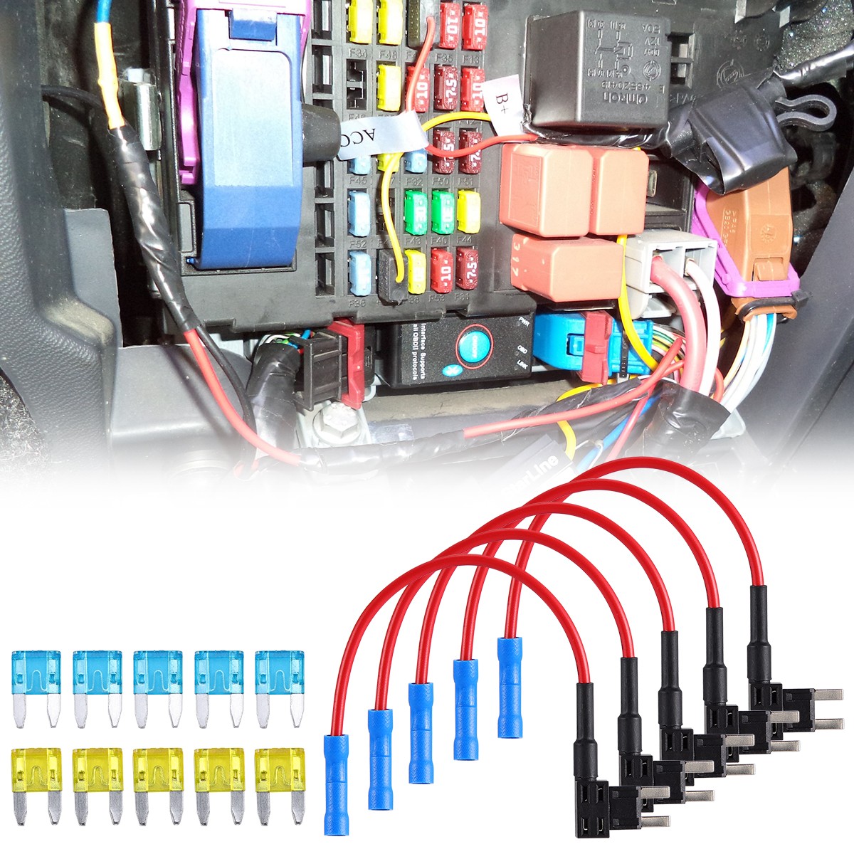 30Pcs Fuse TAP ADAPTER KIT 12V 15 Amp 20Amp Car Add-a-circuit Mini ATM APM Blade