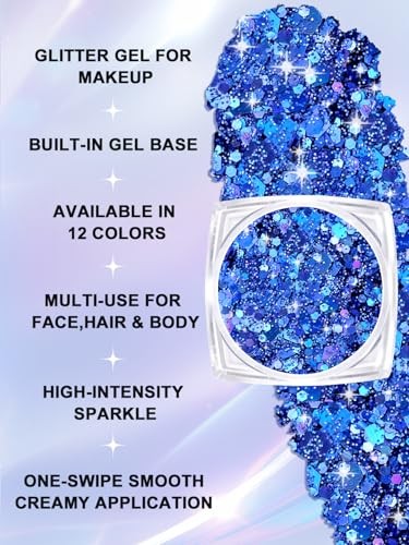 Body Hair Face Glitter for Women Teen Girls, 12 Colors Face Painting Makeup