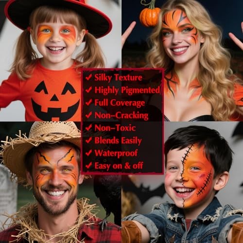 Black Red Orange Face Body Paint - Blendable Facepaint 09 Pumpkin/Scarecrow