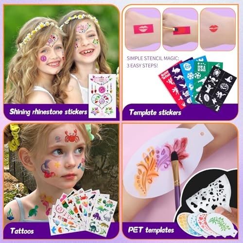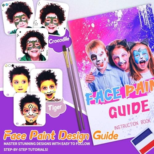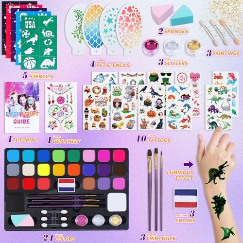 Face Painting Kit for Kids, 24 Colors Face Paint Kit with Stencils Brushes,