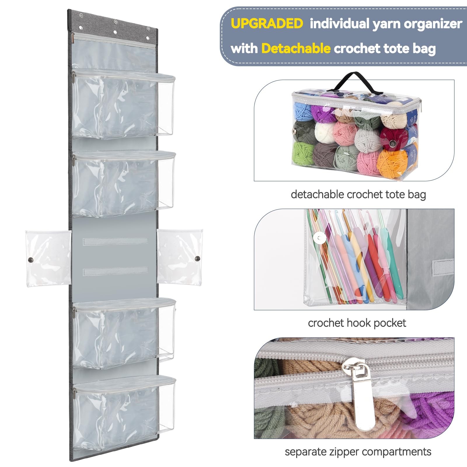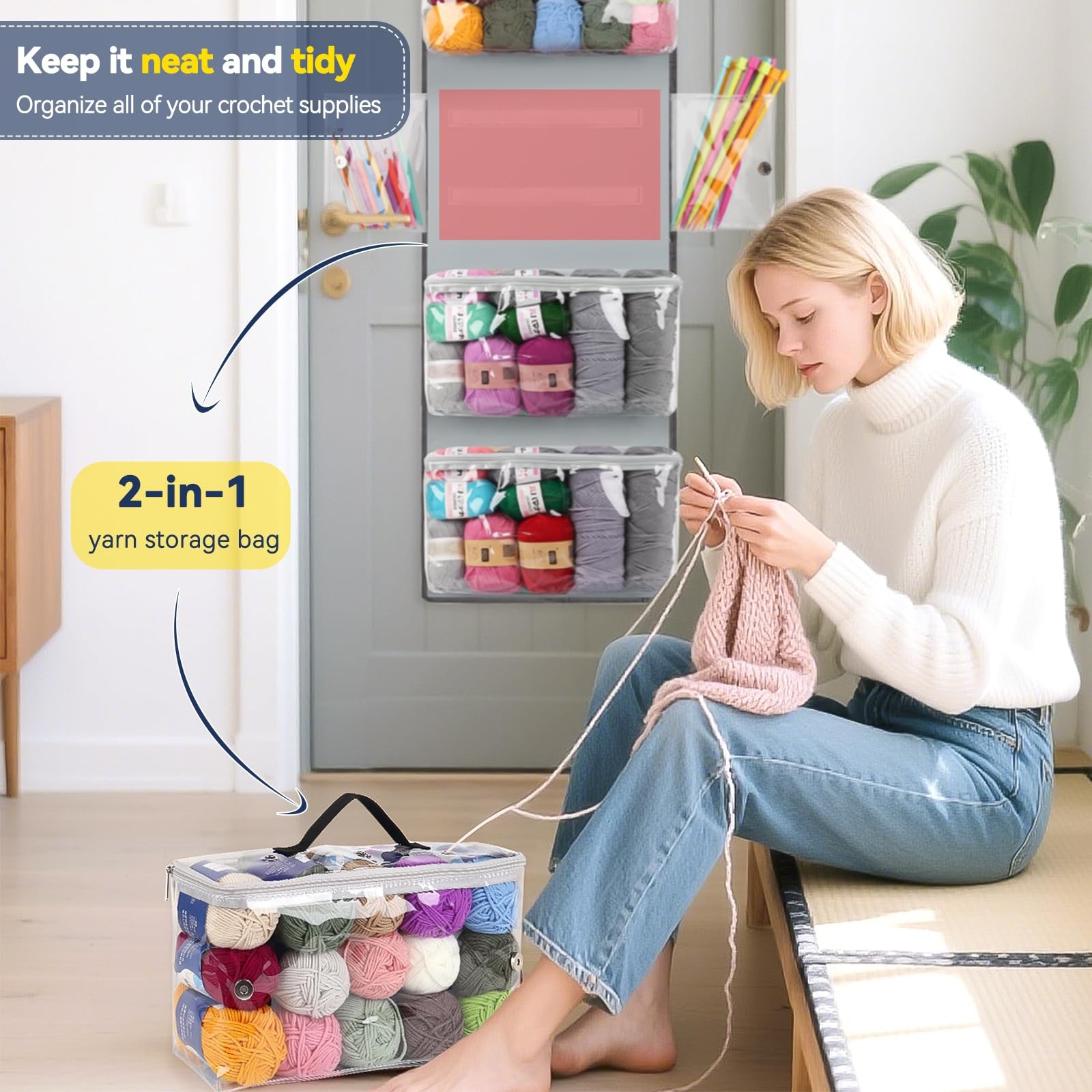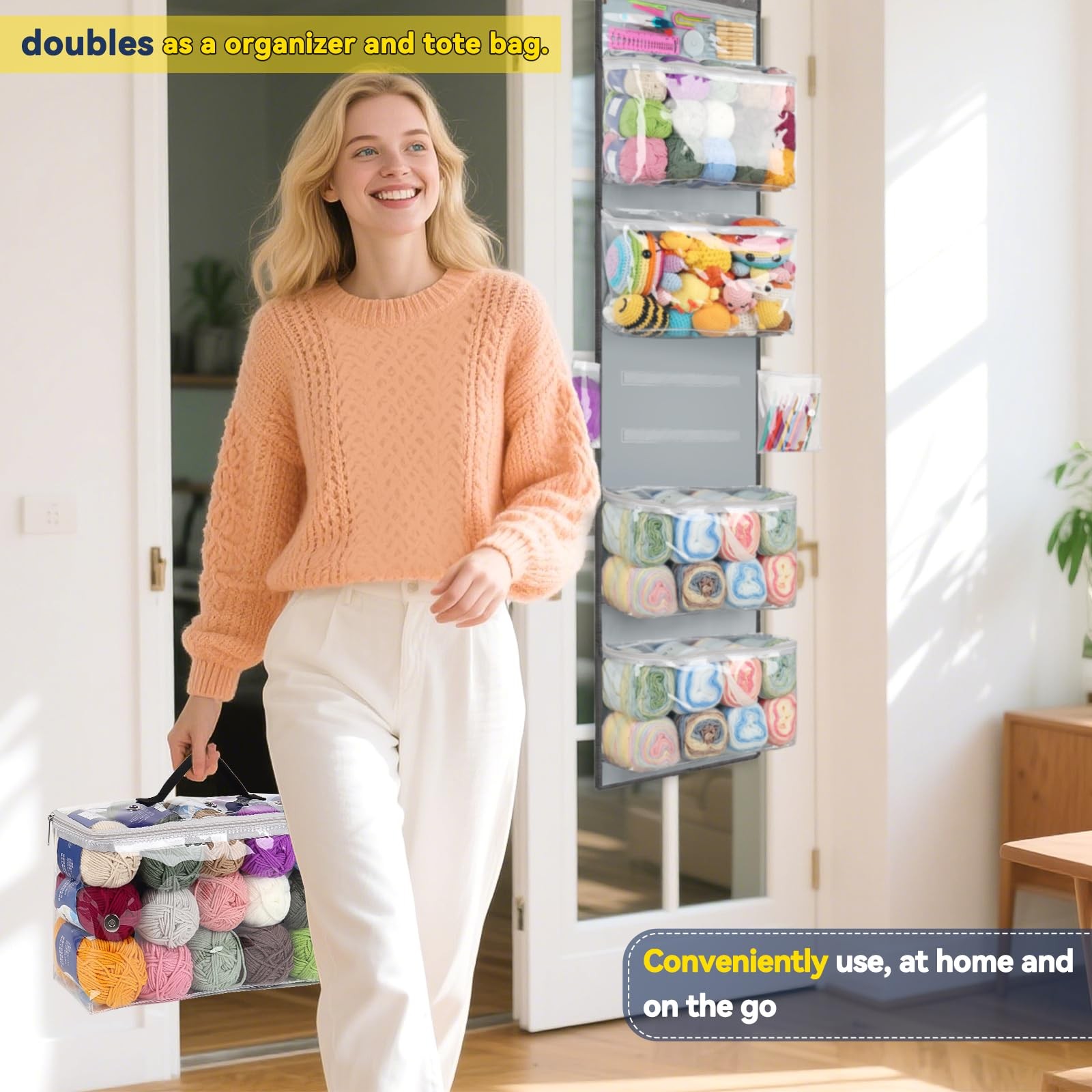 Hanging Yarn Storage Organizer, Over The Door Storage w/Large Capacity Knitti...
