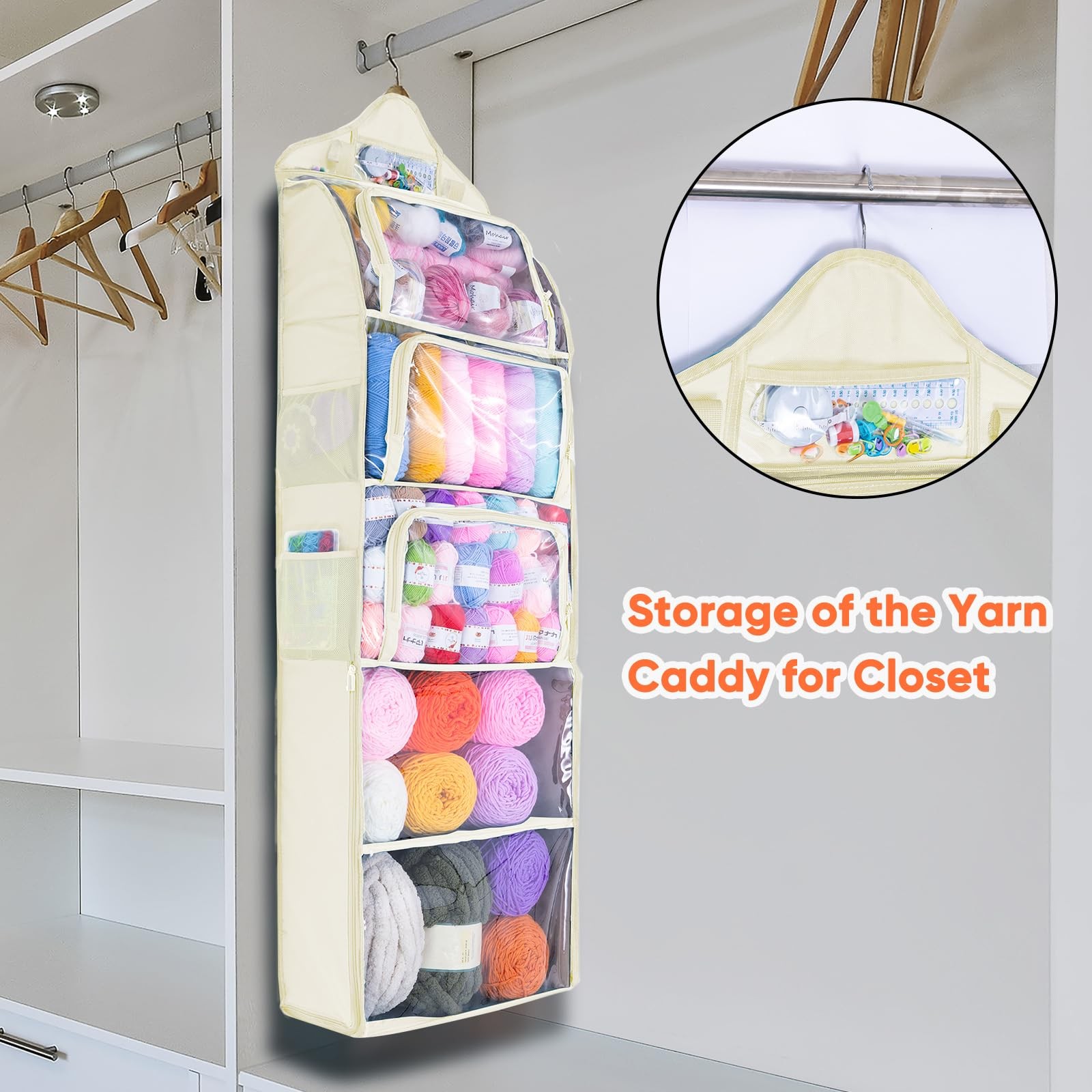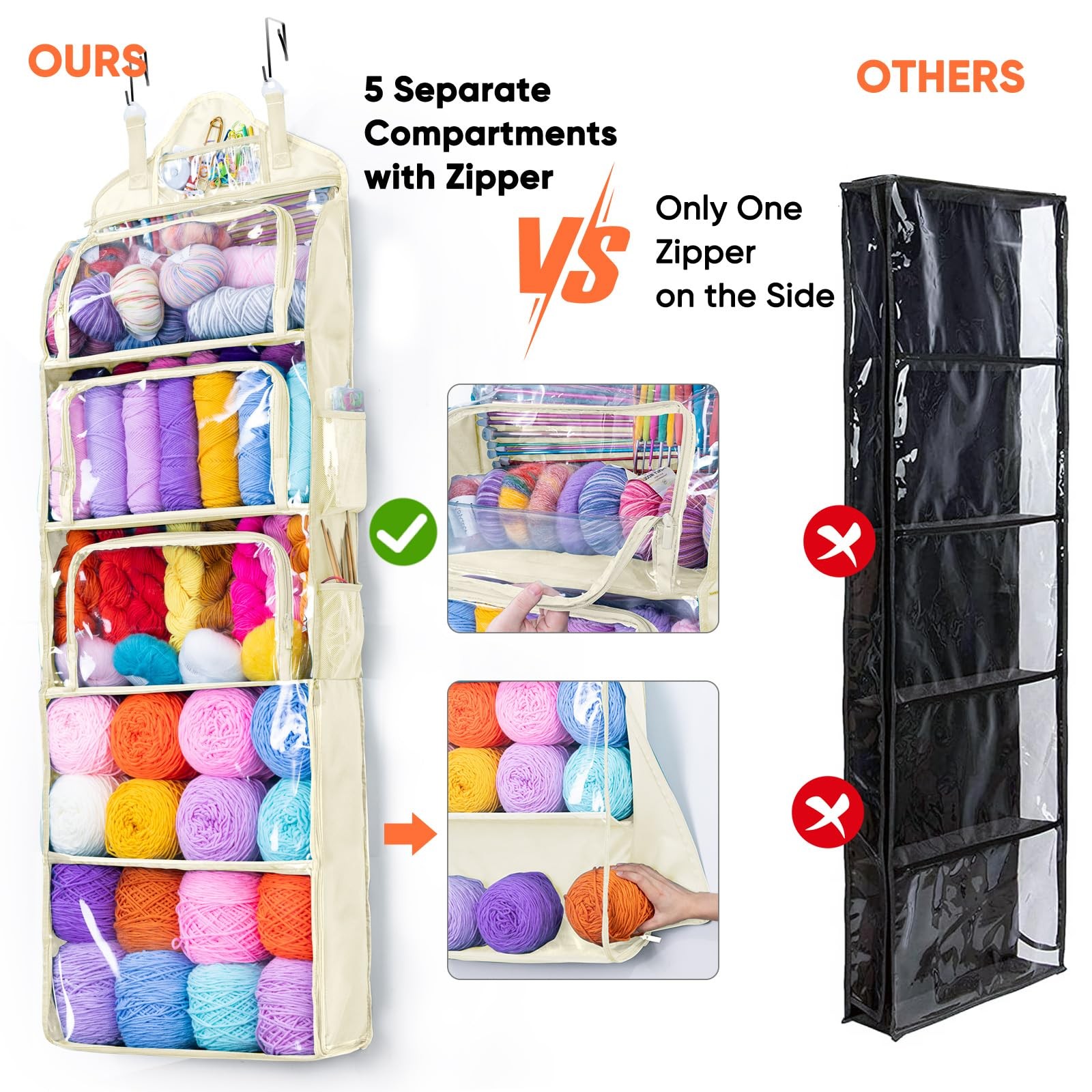 Hanging Yarn Storage Organizer Over-The-Door Crochet Organizer with Both Fro...