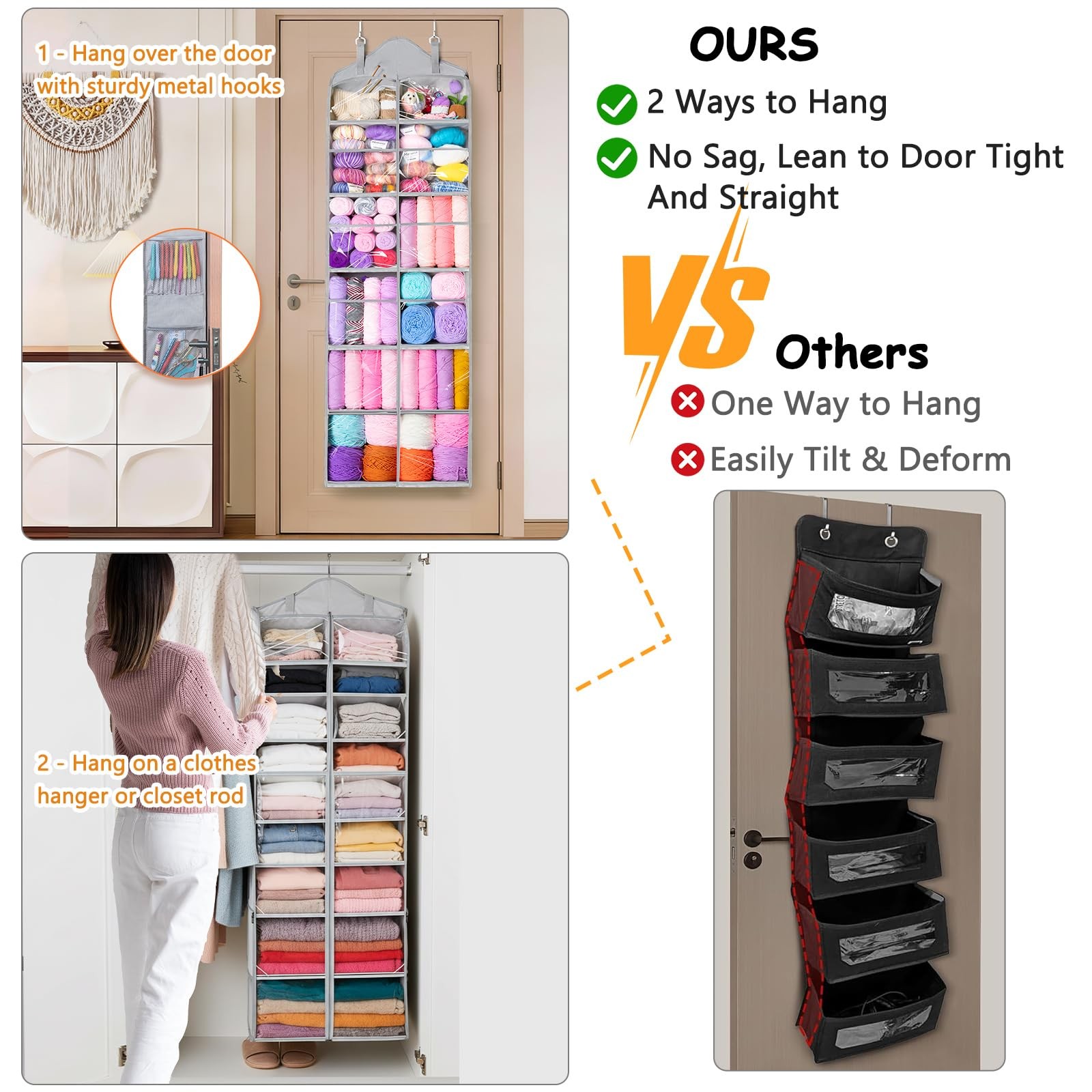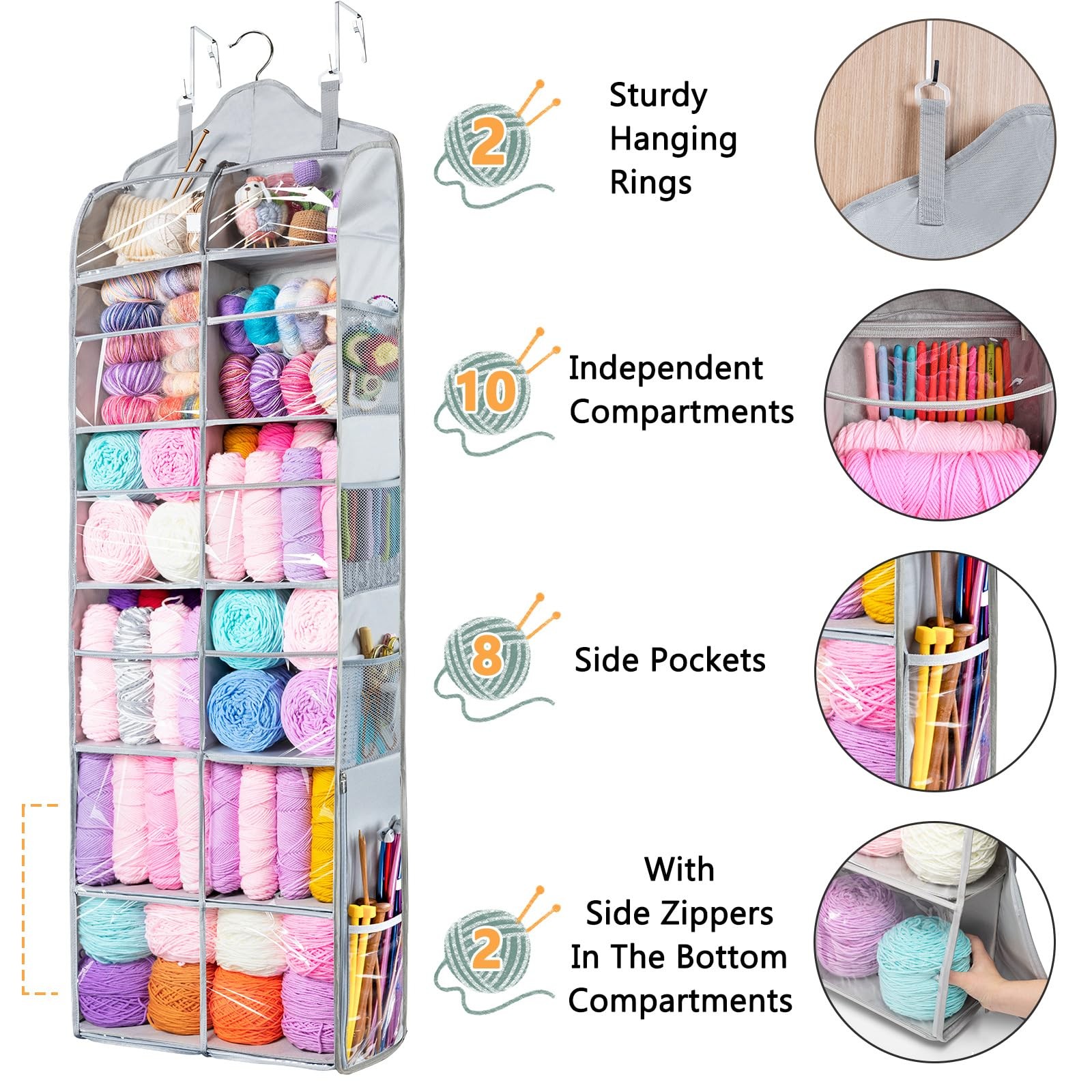Hanging Yarn Storage Organizer with Zipper Pockets, 6 Tiers Over The Door C...