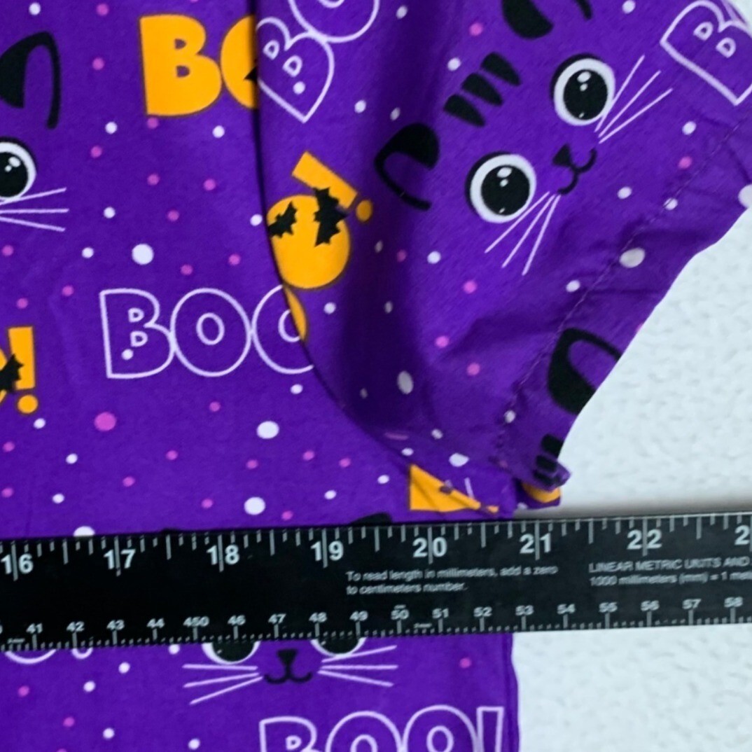 как выглядит Halloween Scrub Top Sz S Scaredy Cat Boo Kitty V Neck Stretch Healthcare EVS фото