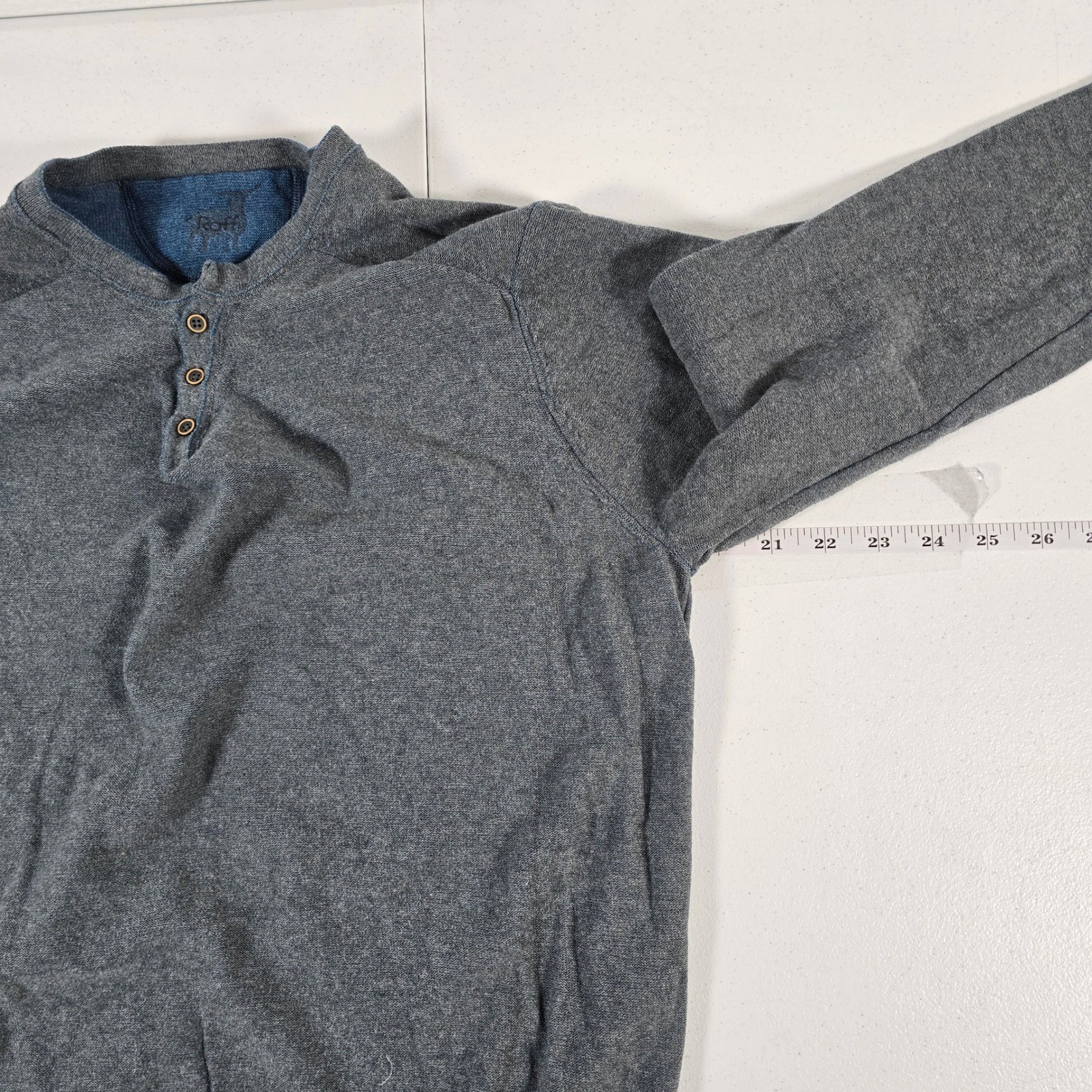 Raffi Mens Charcoal Grey Knit Henley Sweater Long Sleeve 3-Button Pullover