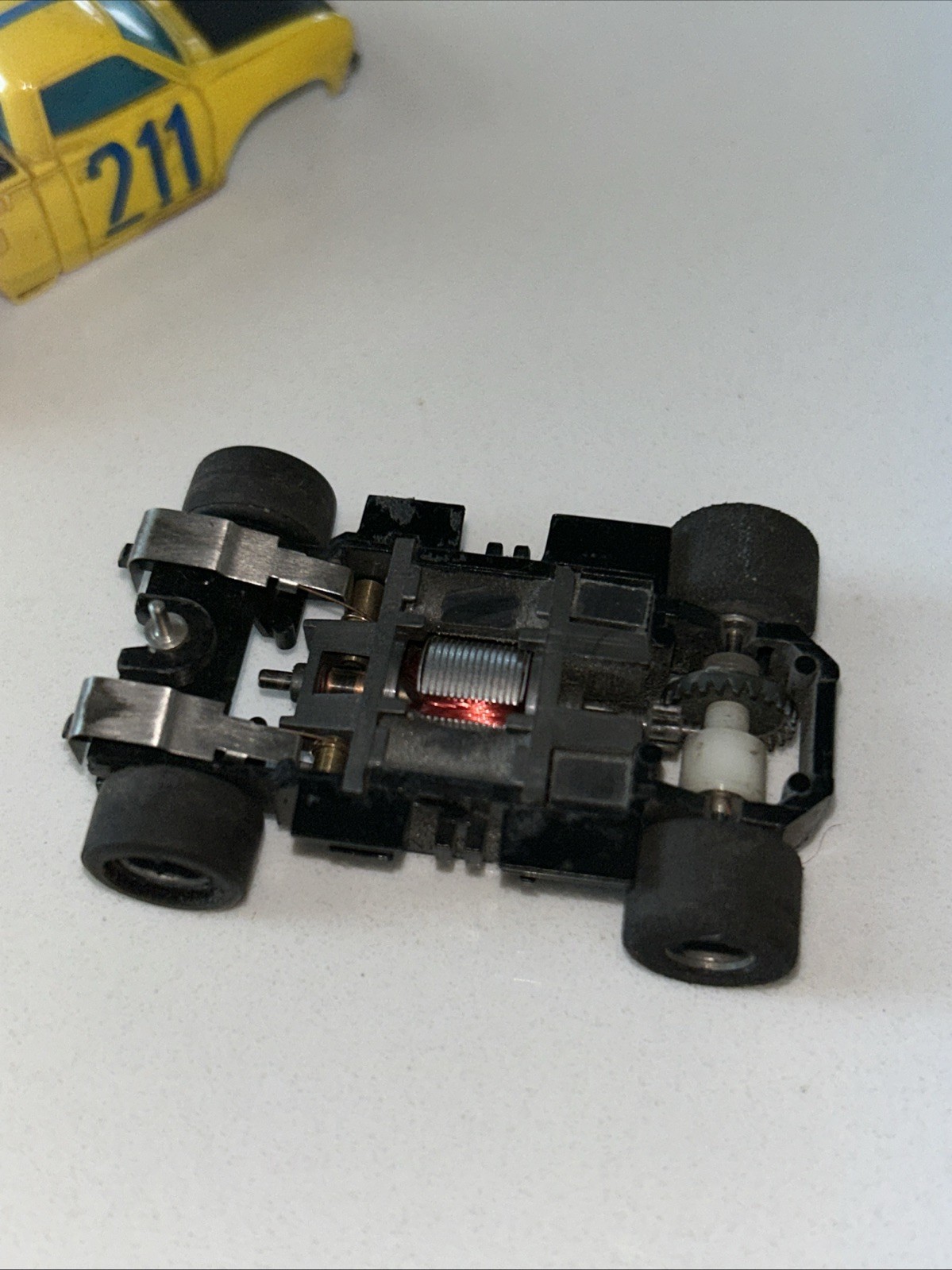 как выглядит Vintage Aurora AFX Yellow 211 Datsun Pick Up Truck HO Slot Base Not Original фото
