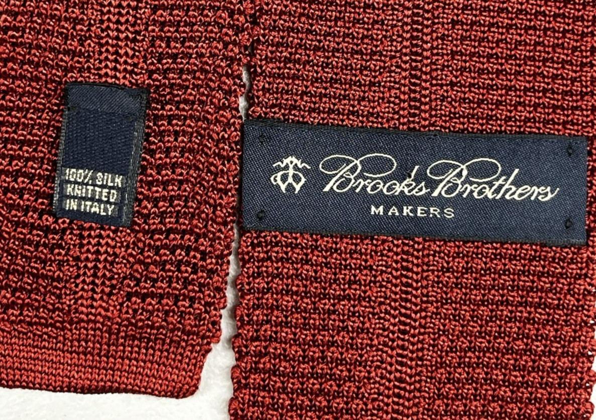 как выглядит VTG Brooks Brothers Makers 100 Silk Knit Burgundy Red Square Tie Smart Casual фото