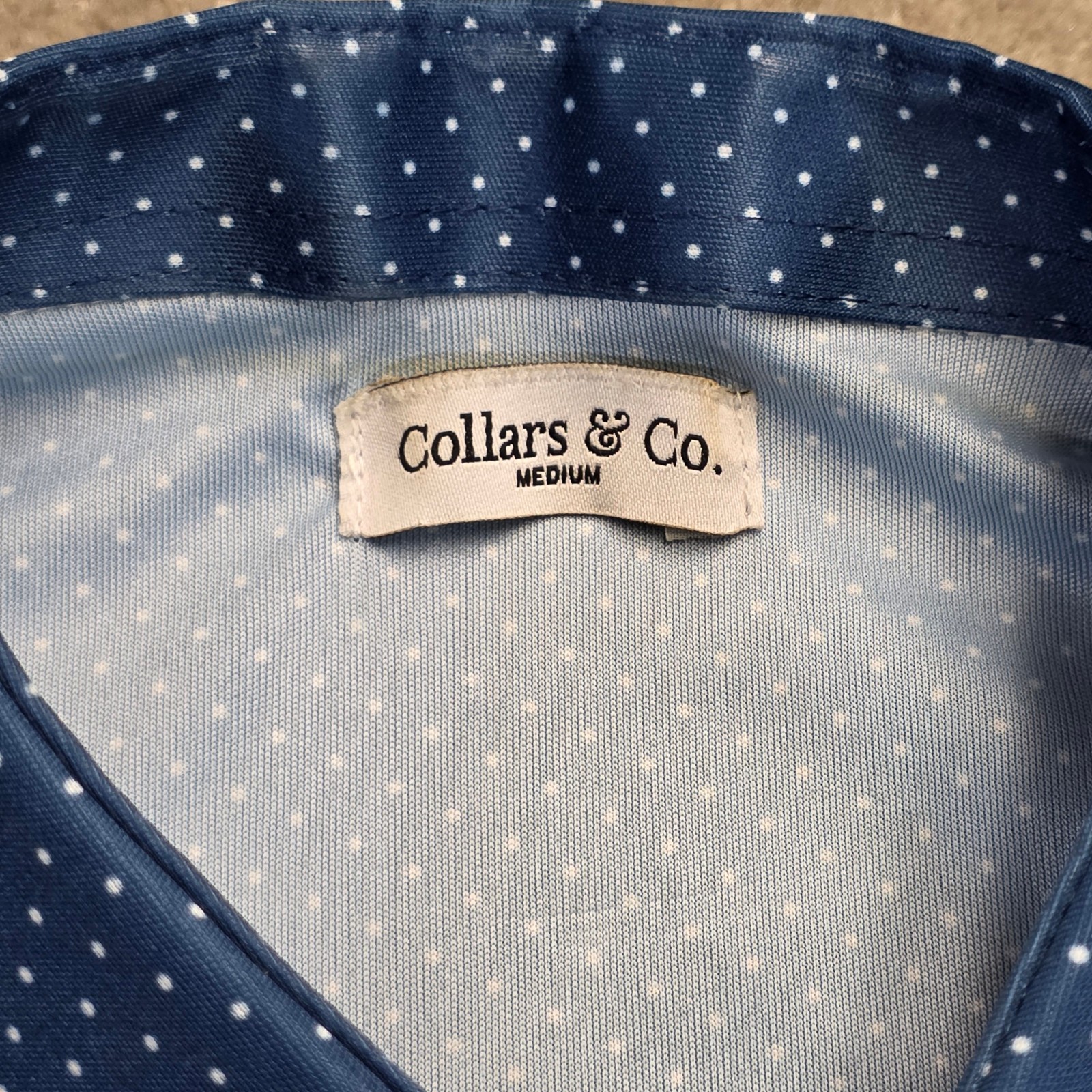 как выглядит Collars and Co Mens Dress Collar 4-Way Stretch Polo Shirt Size M Blue Polka Dot фото