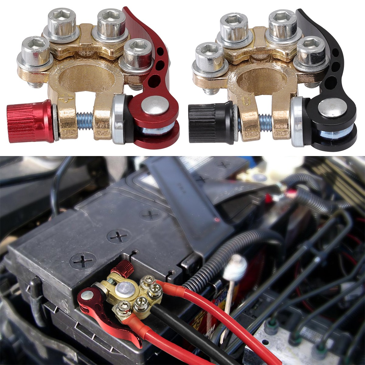 4PCS Car Battery Terminal Connectors Quick Release Positive Negative Clamps