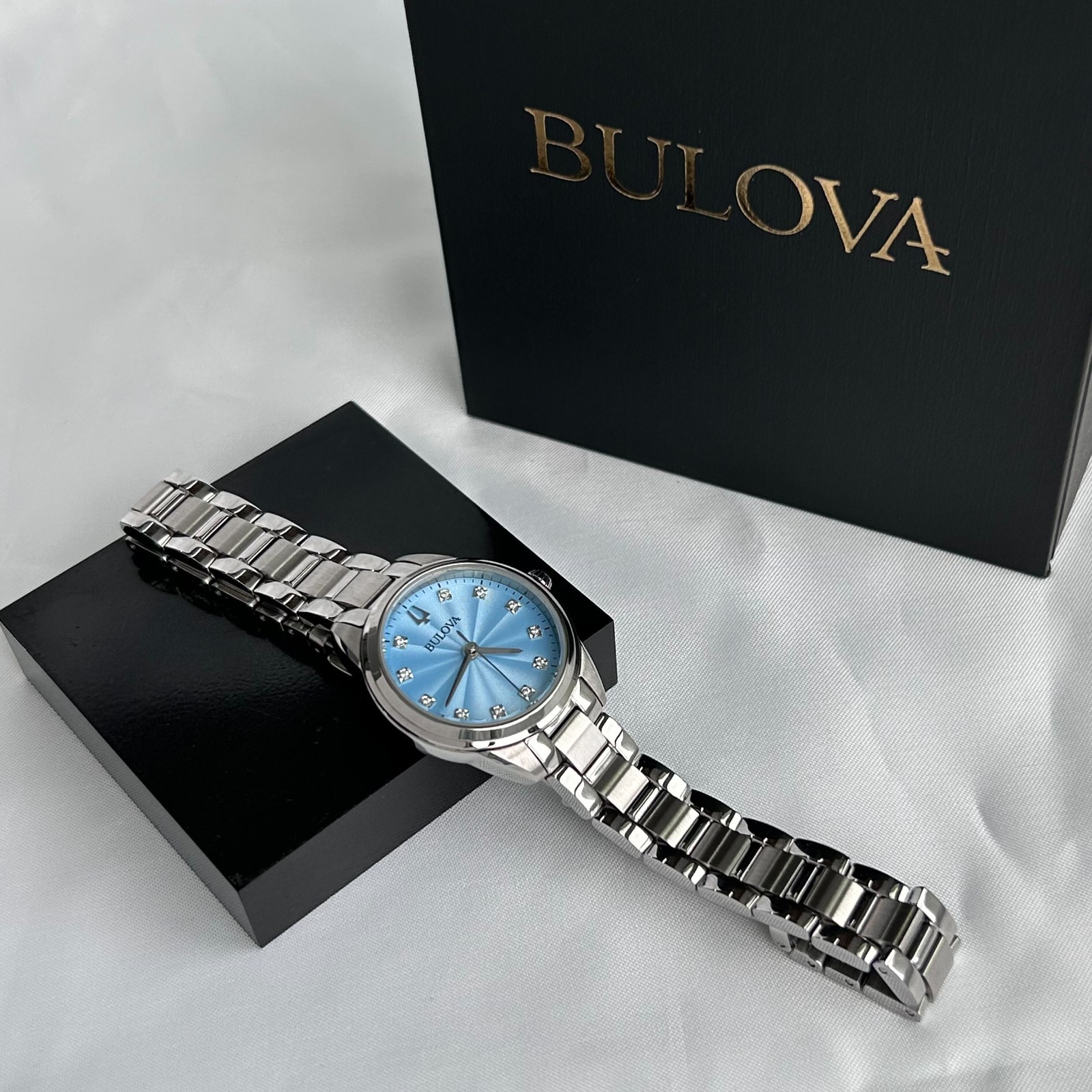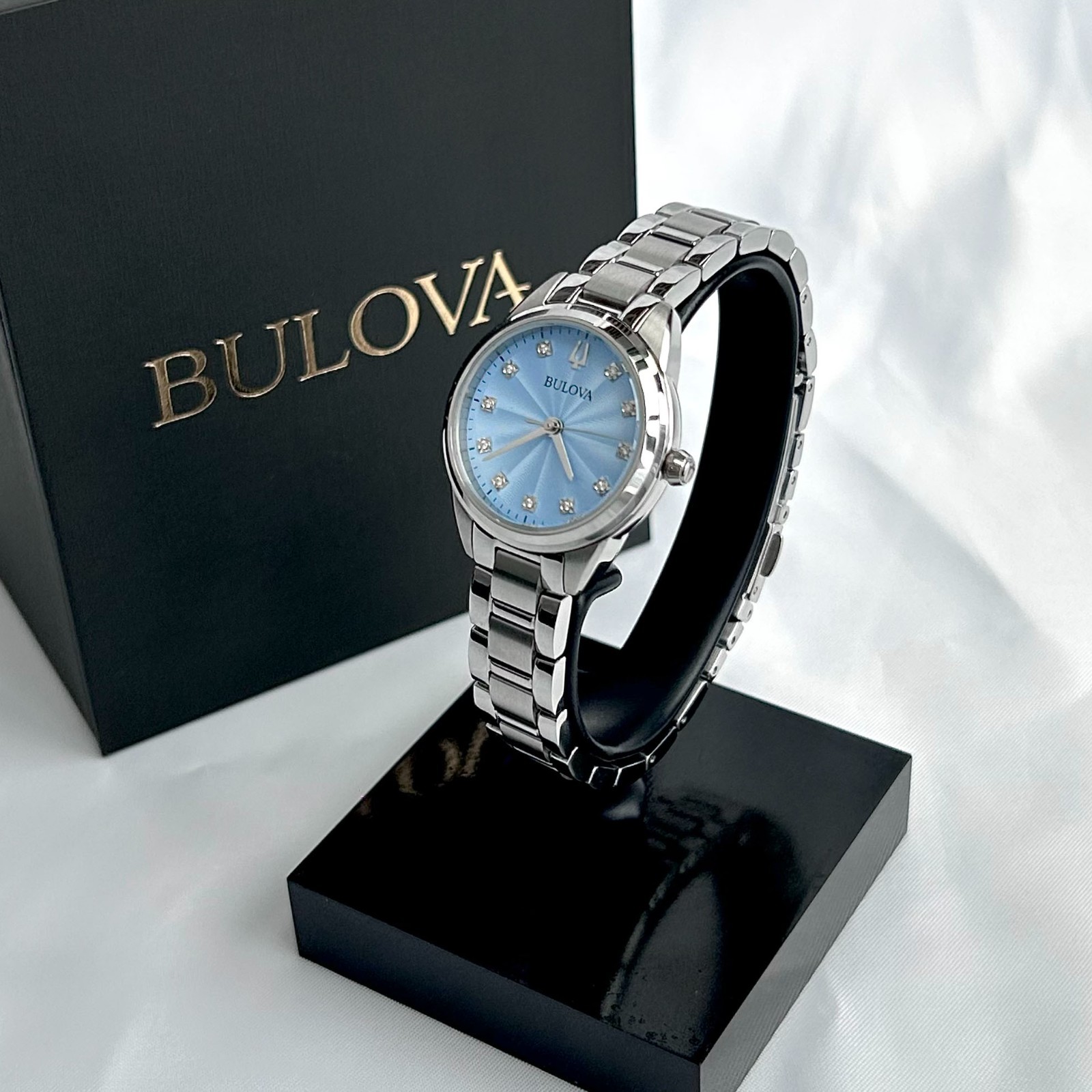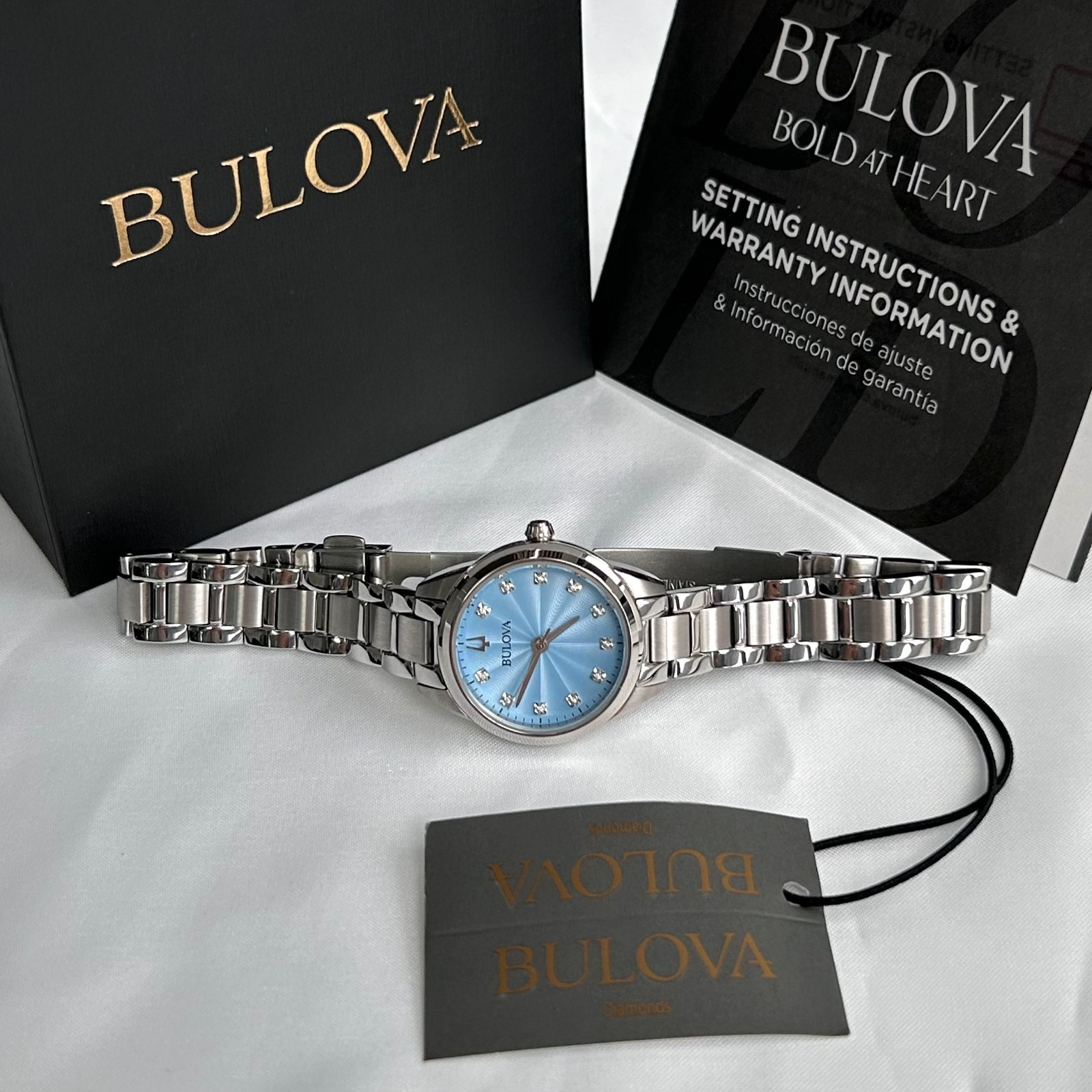 New w/box/Bulova Sutton Diamond Blue Dial 96P250 Women's Quartz Watch 28mm