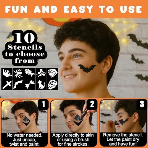 Face Paint Kit with Stencils, 12 Large Professional Face Painting Kit for