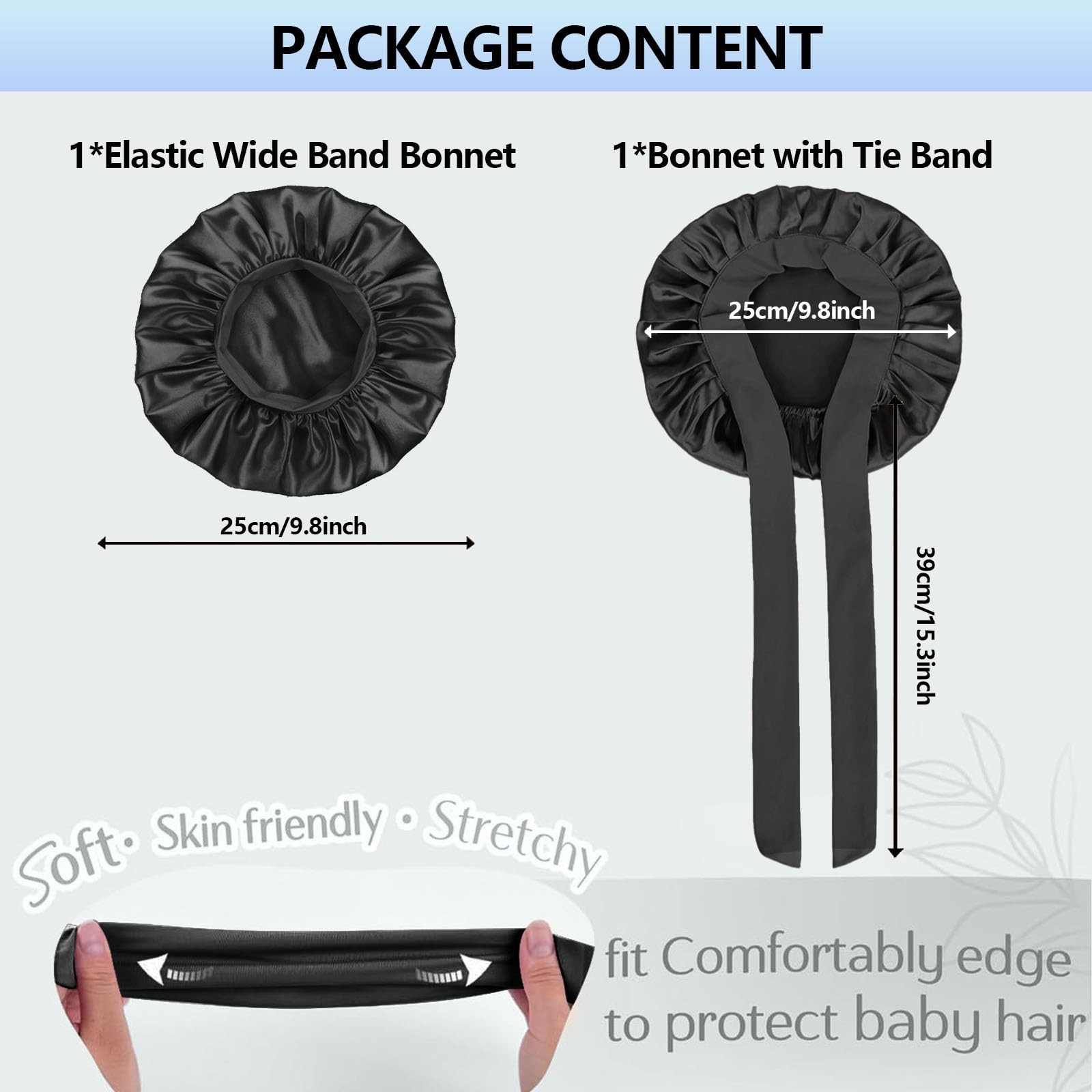 2Pcs Baby Silk Satin Bonnet for Kids Sleeping Cap - Elastic Wide Band Hair Bo