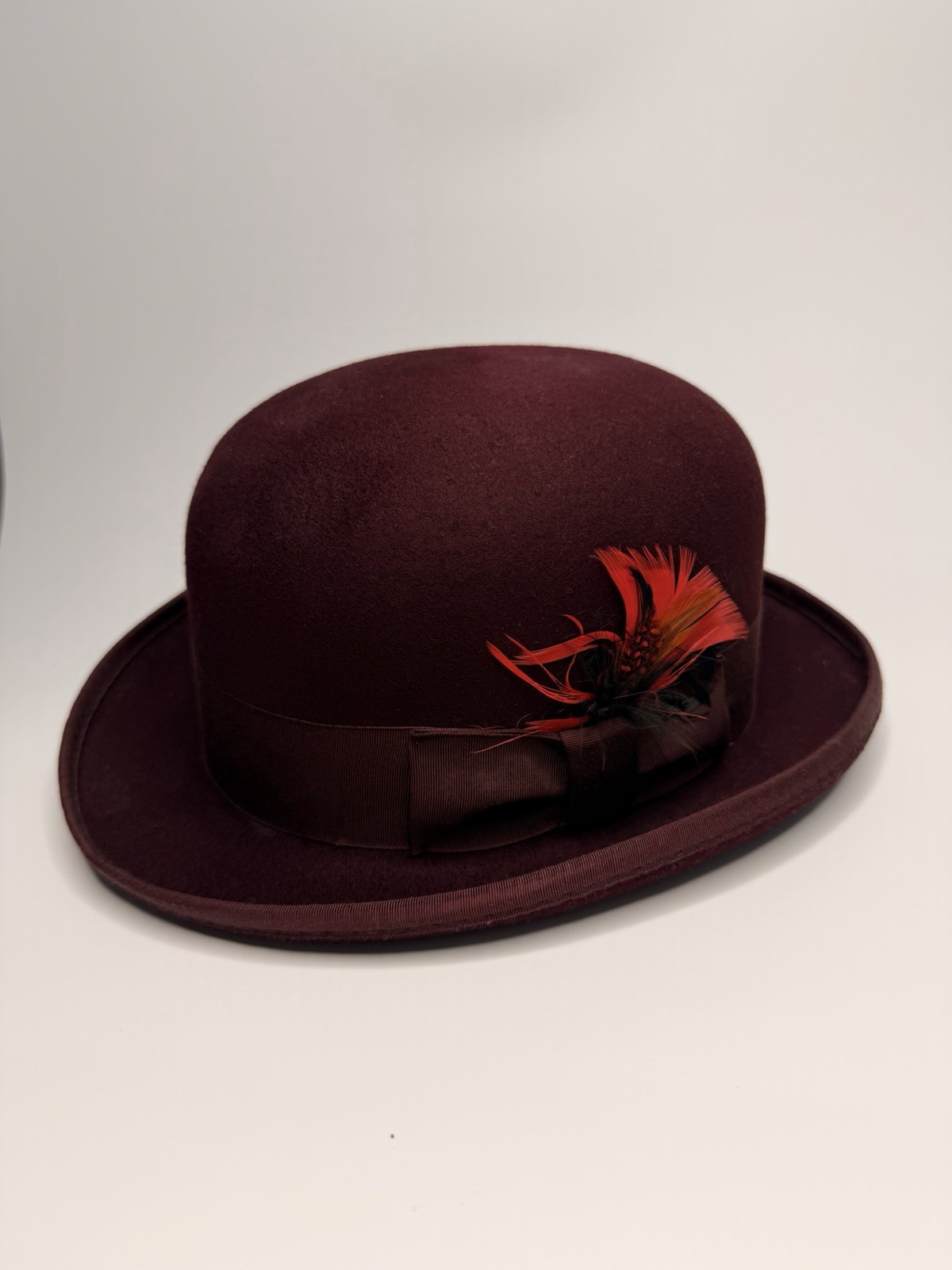 Bailey Burgundy Bowler Hat Large Men Lined Formal Feather Classic