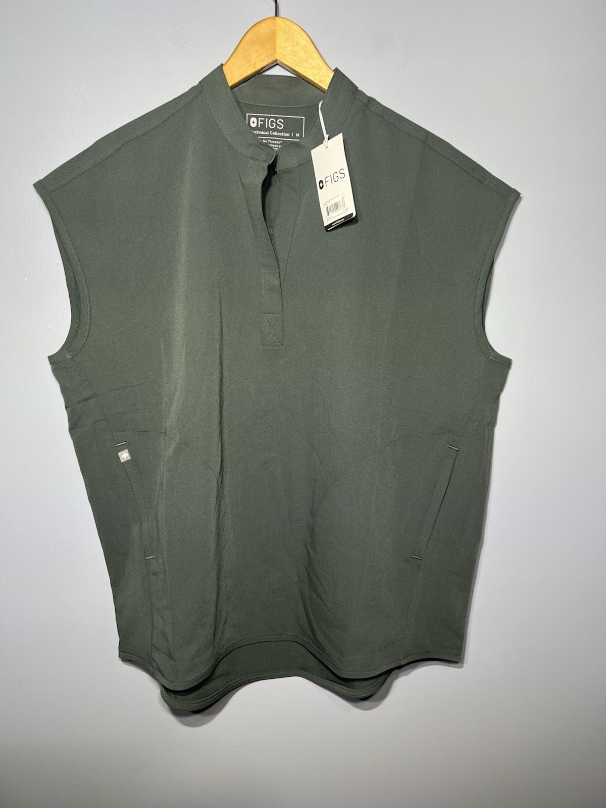 Figs Technical Collection Rafaela Scrub Top Olive Green Oversized Collar Sz Med