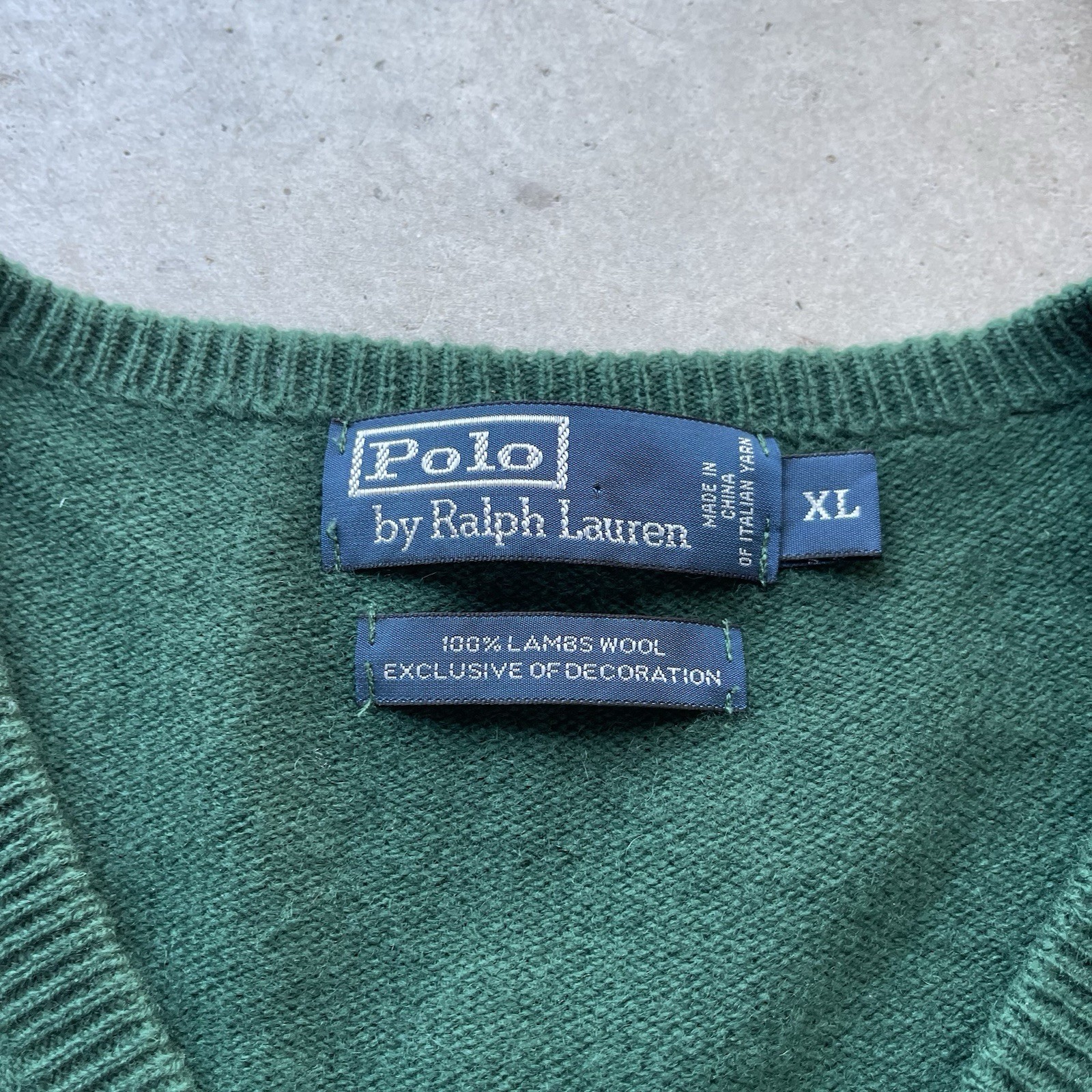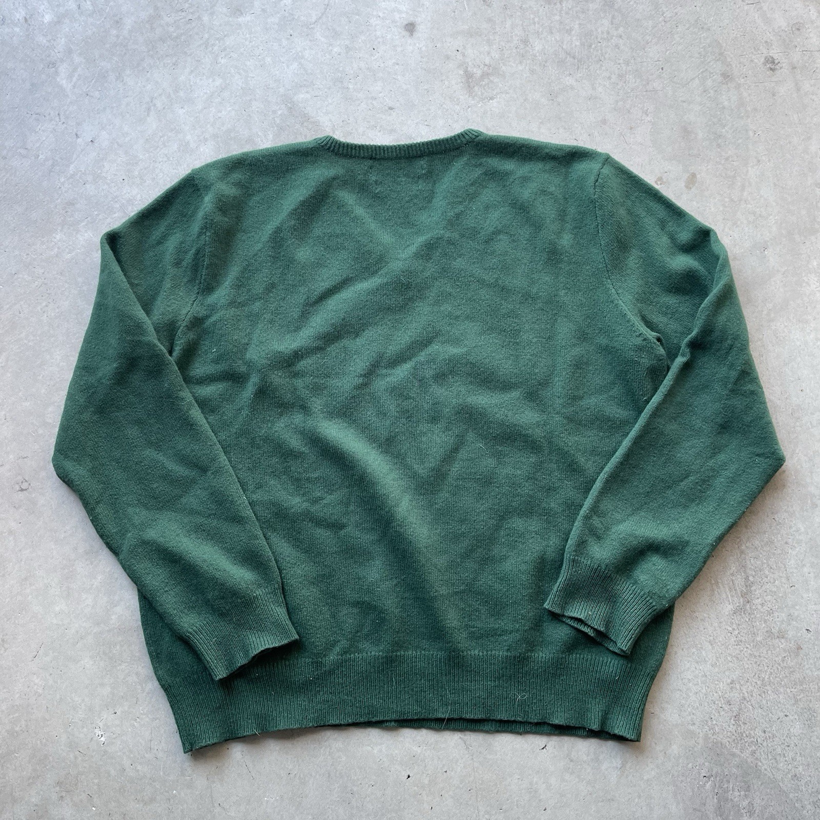 Vintage Polo Ralph Lauren 100 Lambswool Green V-Neck Sweater Mens XL