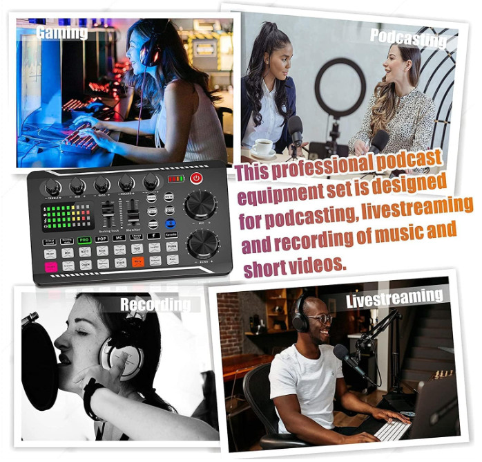 Podcast Microphone Bundle, BM-800 Condenser Mic with Live Sound Card Kit, Podcas