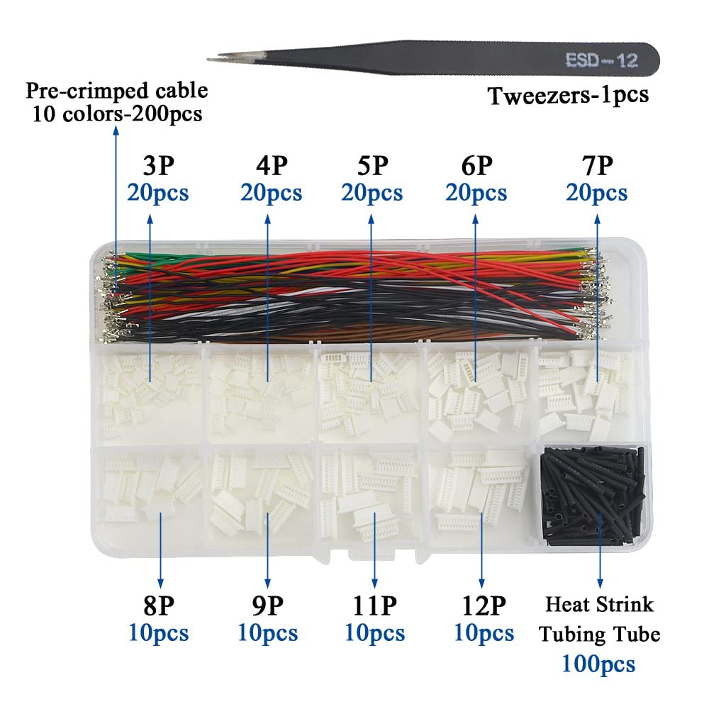160Pcs 1mm SH Connecting Plug Kit with 200 Pre-Crimped Cable Wires 2-12 Pin