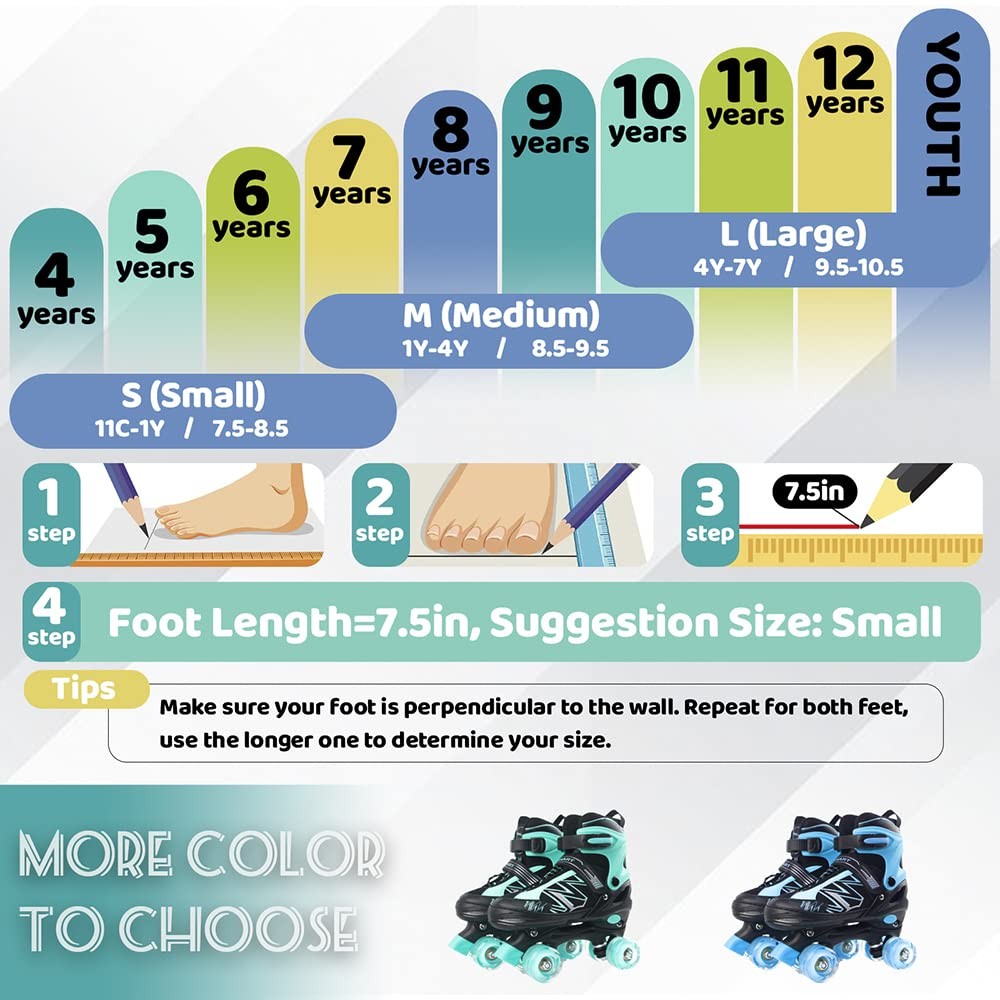 LIRENGUI Adjustable Kids Roller Skates for Boys Girls, Light Up Wheels