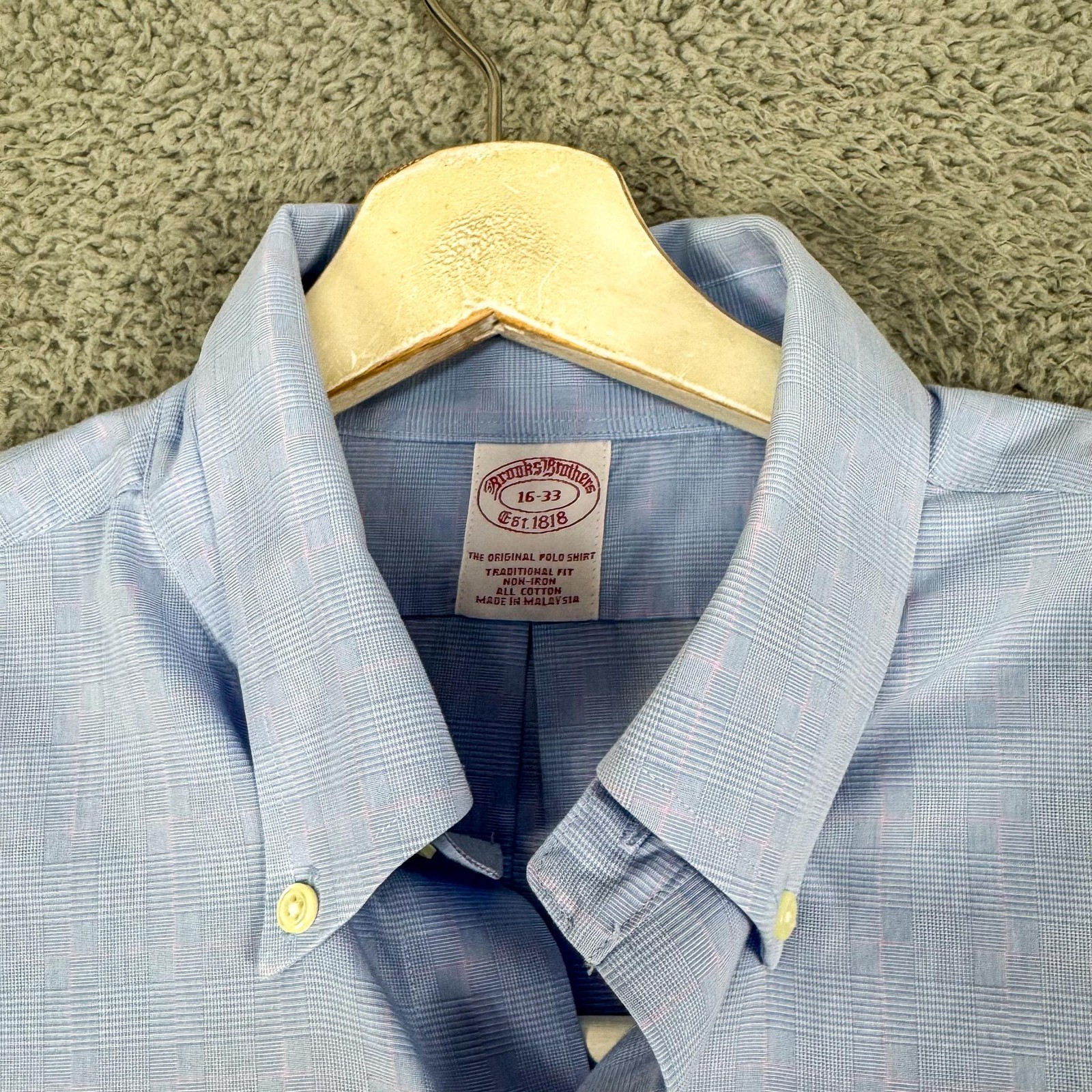 Brooks Brothers Shirt Mens 16-33 Blue Check Button Down Non Iron Cotton Office