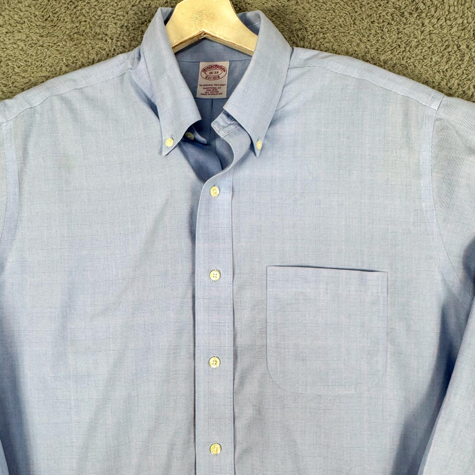 как выглядит Brooks Brothers Shirt Mens 16-33 Blue Check Button Down Non Iron Cotton Office фото
